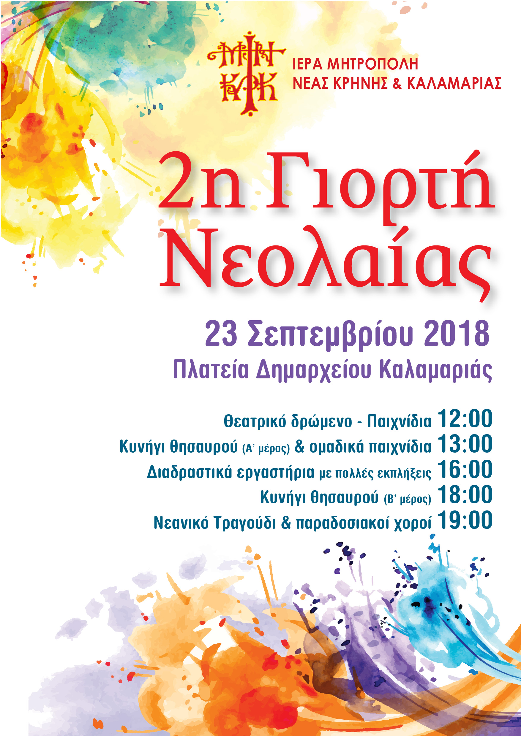 Γιορτή Νεολαίας, για δεύτερη διαδοχική χρονιά, διοργανώνει στις 23 Σεπτεμβρίου η Ιερά Μητρόπολη Κρήνης και Καλαμαριάς, στην Πλατεία προσφυγικού ελληνισμού(Δημαρχείο Καλαμαριάς).