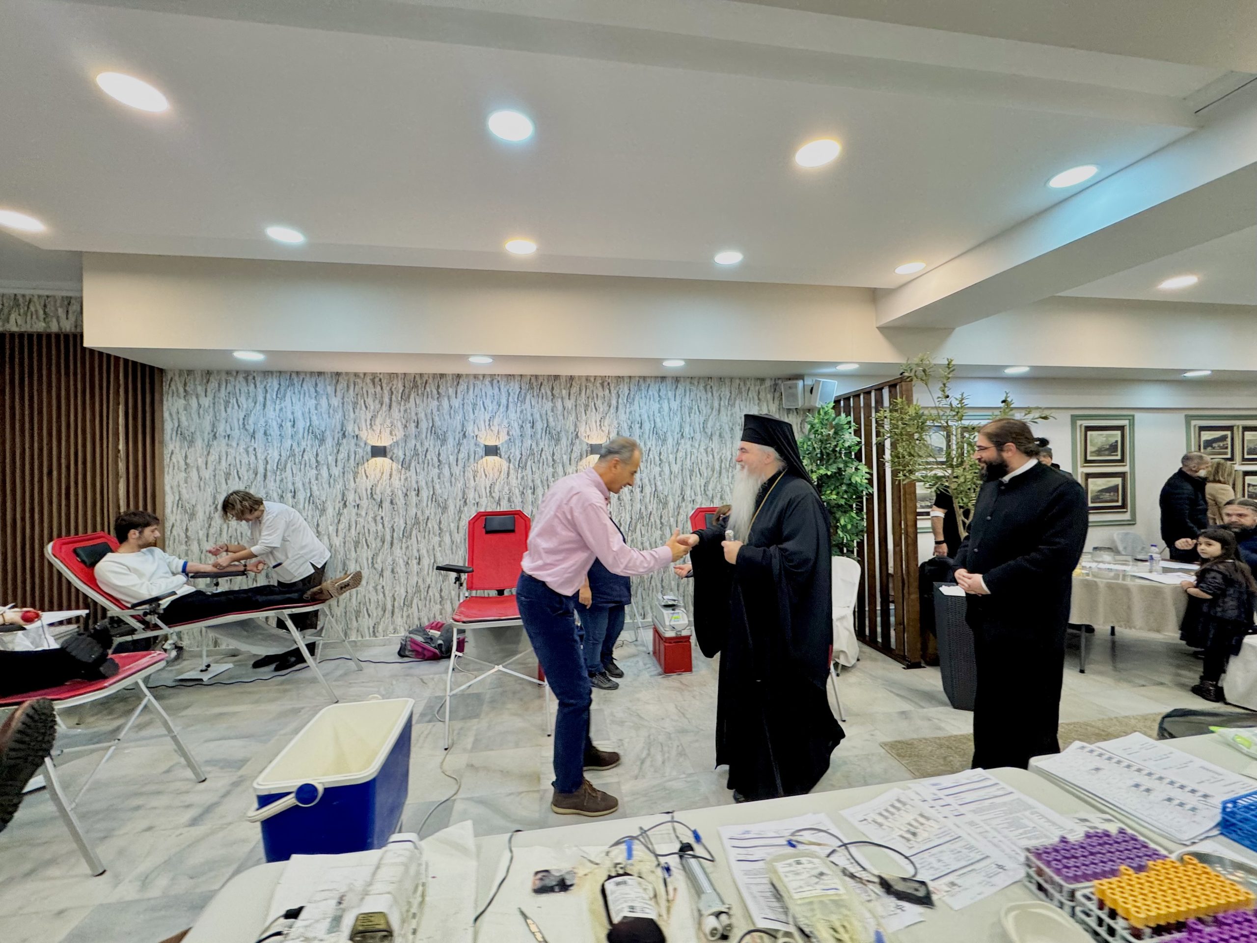 Ο οικείος Ποιμενάρχης παρευρέθηκε στον χώρο της αιμοδοσίας και απηύθυνε θερμές ευχαριστίες προς τους εθελοντές αιμοδότες για το πολύτιμο δώρο ζωής που προσέφεραν, προς το ιατρικό και νοσηλευτικό προσωπικό για τον κόπο της ελεύσεως τους στην ενορία, αλλά και προς όλους όσοι συνέβαλαν στην άρτια διοργάνωση της αιμοδοσίας.