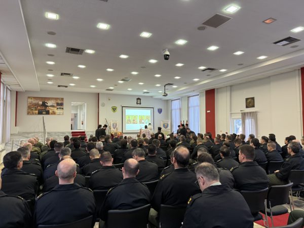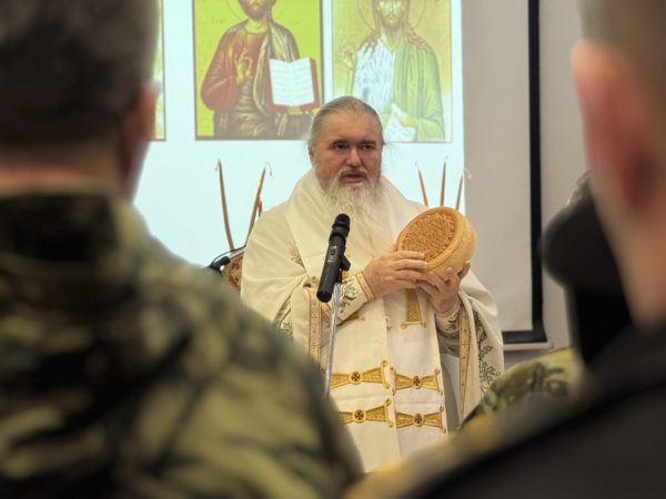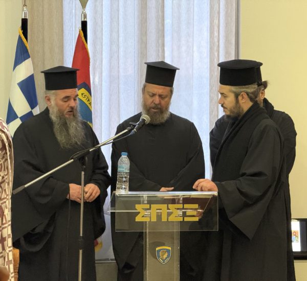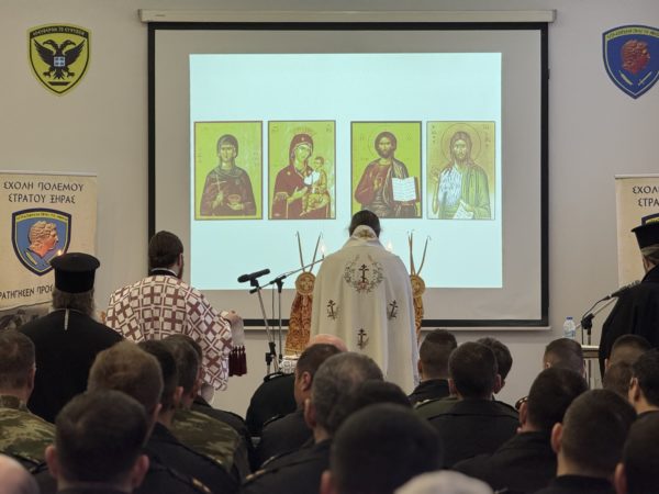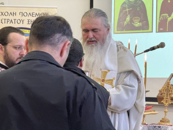 Λόγω της στενότητος χώρου, στο Παρεκκλήσιο του Στρατοπέδου, η Θεία Λειτουργία τελέστηκε στην αίθουσα τελετών της Σχολής.