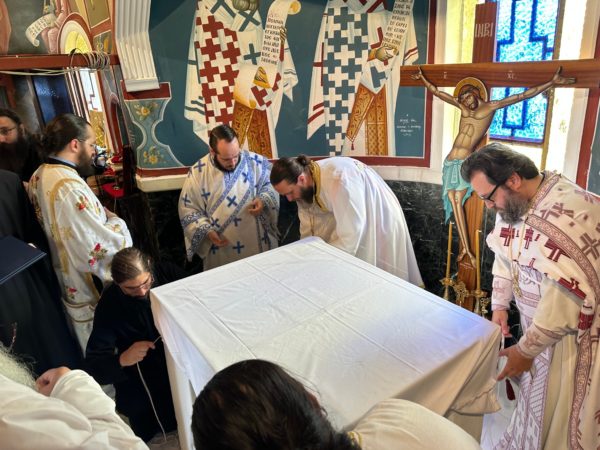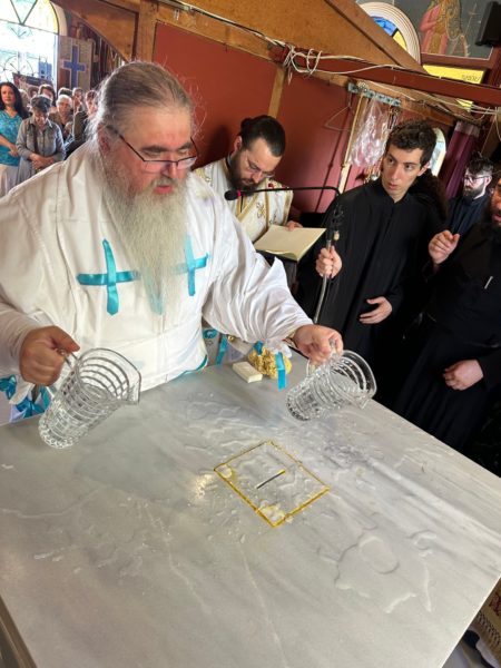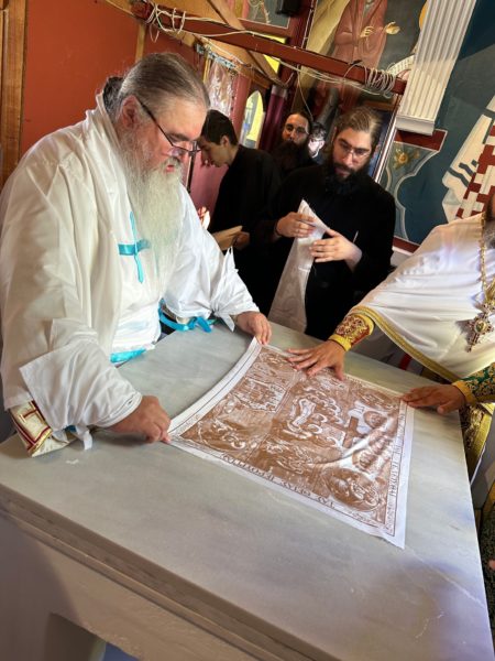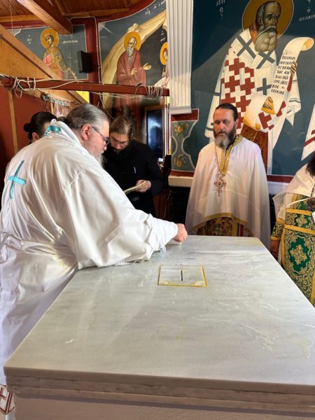 Καθ’ όλη τη διάρκεια των εγκαινίων ο Σεβασμιώτατος κ. Ιουστίνος ερμήνευε τις λειτουργικές πράξεις που τελούνταν και επεσήμανε την αξία της καθιερώσεως ιερού Θυσιαστηρίου.