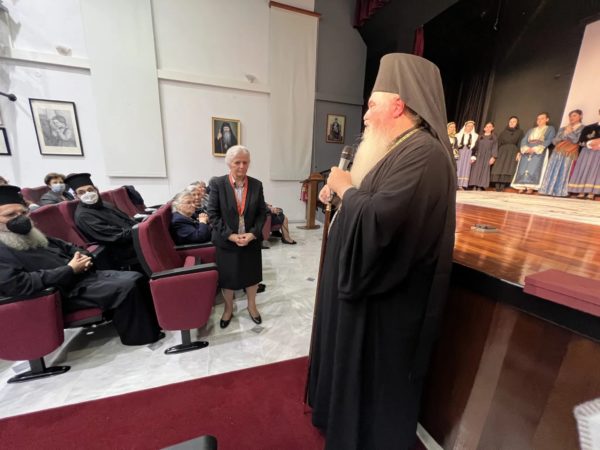 Στο τέλος της εκδήλωσης και μέσα στα ζωηρά χειροκροτήματα του παρευρισκόμενου κόσμου, ο Μητροπολίτης Νέας Κρήνης και Καλαμαριάς ευχαρίστησε τις φοιτήτριες για την άριστη παρουσίαση της εκδήλωσης και επαίνεσε την αγάπη τους προς την Εκκλησία, επέδωσε δε τον Σταυρό Α’ Τάξεως του Αγίου μεγαλομάρτυρος Ευγενίου του Τραπεζουντίου, στην Προεστώσα της Αδελφότητας «Χριστιανική Ελπίς» κ. Ιουλία Χατζηδάκη, ως αναγνώριση της σημαντικής προσφοράς της Αδελφότητος στο έργο της κατηχήσεως στην Ιερά Μητρόπολη Νέας Κρήνης και Καλαμαριάς.