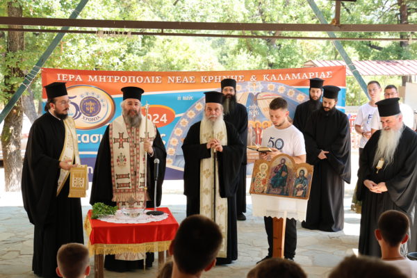 Την Τελετή του αγιασμού της Α’ Κατασκηνωτικής Περιόδου Αγοριών Δημοτικού πραγματοποίησε ο οικείος Σεβασμιώτατος, Μητροπολίτης Φλωρίνης, Πρεσπών και Εορδαίας κ. Ειρηναίος, τον οποίο εγκάρδια υποδέχθηκαν ο Σεβασμιώτατος κ. Ιουστίνος, ο Γενικός Υπεύθυνος των Κατασκηνώσεων π. Θεόδωρος Τσαμπατζίδης, ο Υπεύθυνος Διαχείρισης π. Αντώνιος Κοτρόνης, το Αρχηγείο, τα Στελέχη, οι κατασκηνωτές και οι εθελοντές και εθελόντριες που διακονούν.