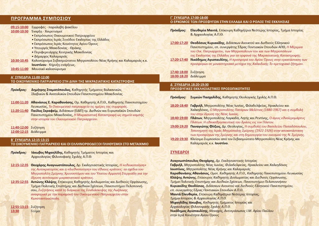 Επιστημονικό Συμπόσιο για τον ρόλο του Οικουμενικού Πατριαρχείου κατά τη Μικρασιατική Καταστροφή