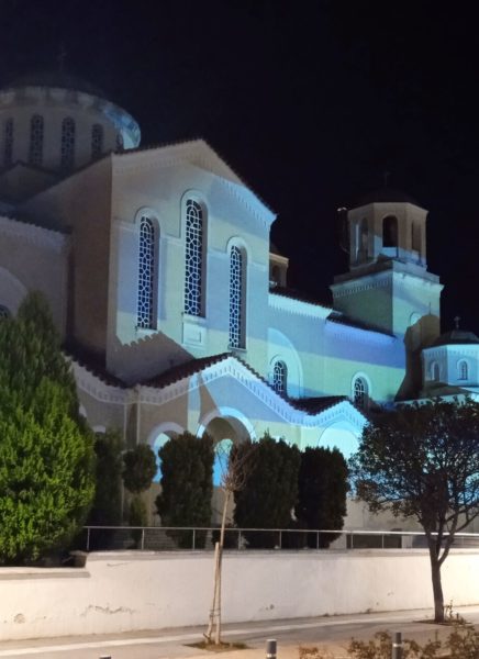Στα χρώματα της Γαλανόλευκης ο Μητροπολιτικός Ναός στην Καλαμαριά