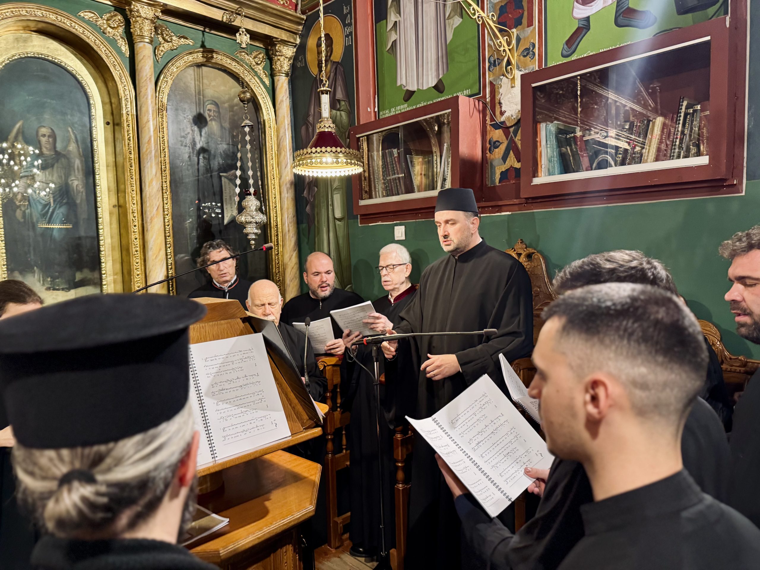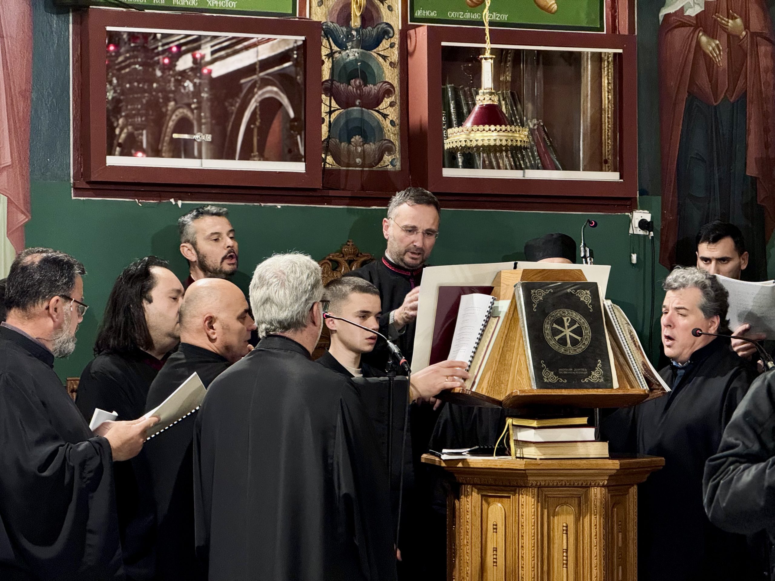 Τους ιερούς ύμνους απέδωσαν με μεγαλοπρέπεια και ακρίβεια οι εκλεκτοί χοροί της Βυζαντινής Χορωδίας της τοπικής Εκκλησίας «Ιάκωβος ο Πρωτοψάλτης», υπό τη διεύθυνση του Πρωτοψάλτη του Μητροπολιτικού Ναού κ. Πέτρου Παπαεμμανουήλ, καθώς και ο Βυζαντινός Χορός της Σχολής Βυζαντινής Μουσικής «Ο Όσιος Διονύσιος ο εν Ολύμπω» της Ιεράς Μητροπόλεως Κίτρους, Κατερίνης και Πλαταμώνος, με χοράρχη τον Πρωτοψάλτη του Ιερού Ναού Παναγίας Λαοδηγητρίας Θεσσαλονίκης κ. Δημήτριο Μανούση.