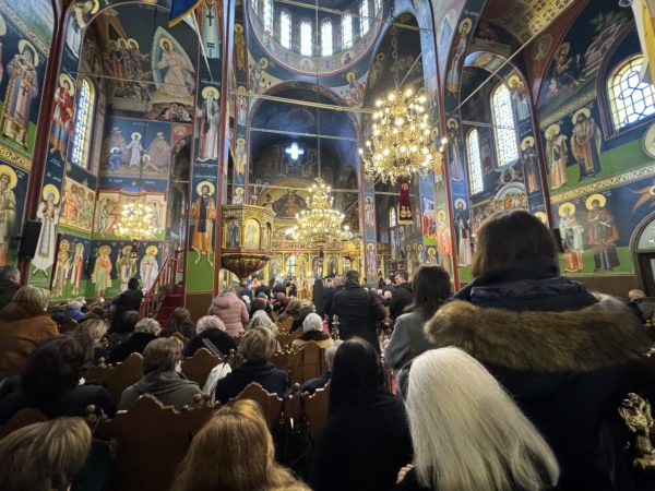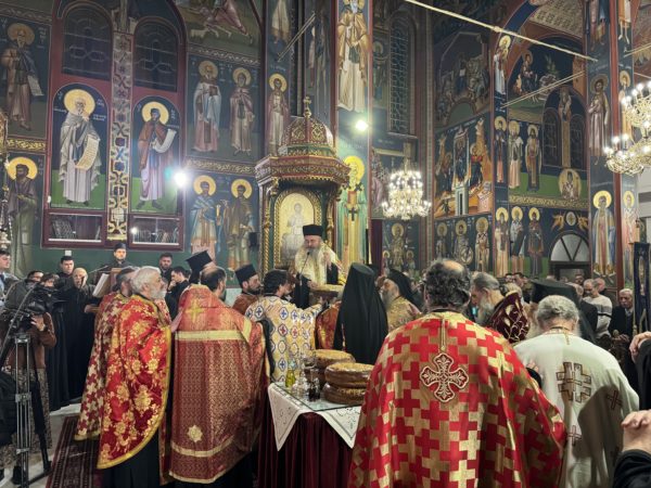 Αφ’ εσπέρας τελέστηκε ο Μέγας Πανηγυρικός Αρχιερατικός Εσπερινός, στον οποίο χοροστάτησε ο Σεβασμιώτατος Μητροπολίτης Περιστερίου κ. Γρηγόριος, με τη συμμετοχή του ιερού κλήρου της πόλεως της Καλαμαριάς.