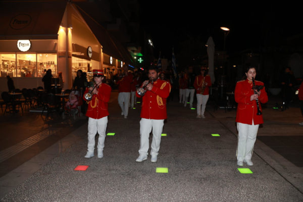 Η Φιλαρμονική μπάντα του Δήμου Καλαμαριάς παιάνιζε μελωδίες και το στρατιωτικό άγημα πλαισίωσε την εικόνα του Αγίου, ενώ πολιτιστικοί σύλλογοι προπορευόταν της λιτανείας.
