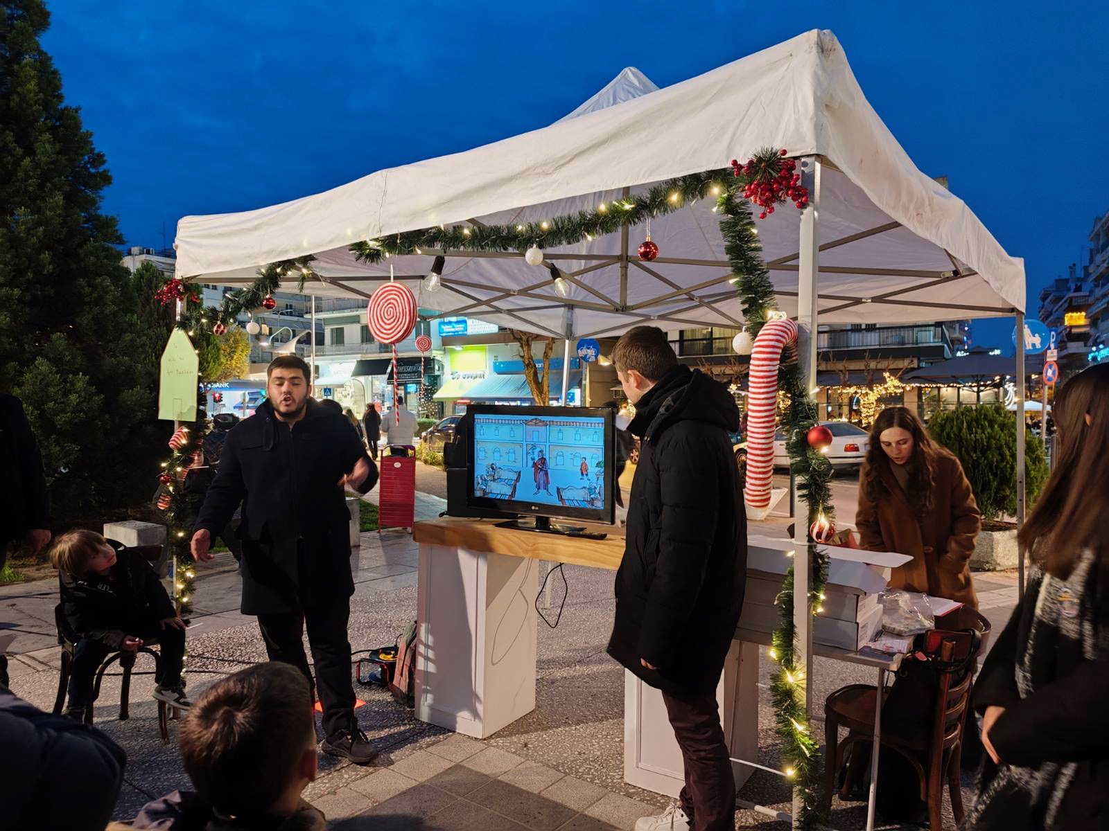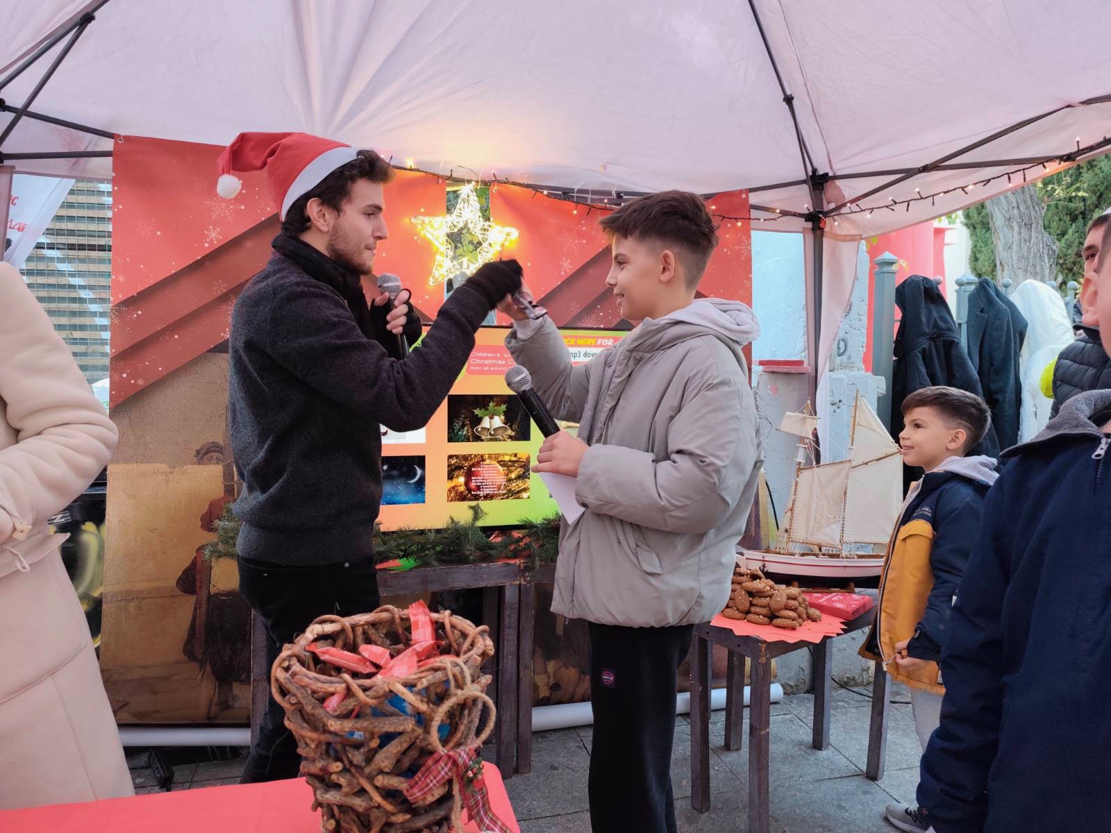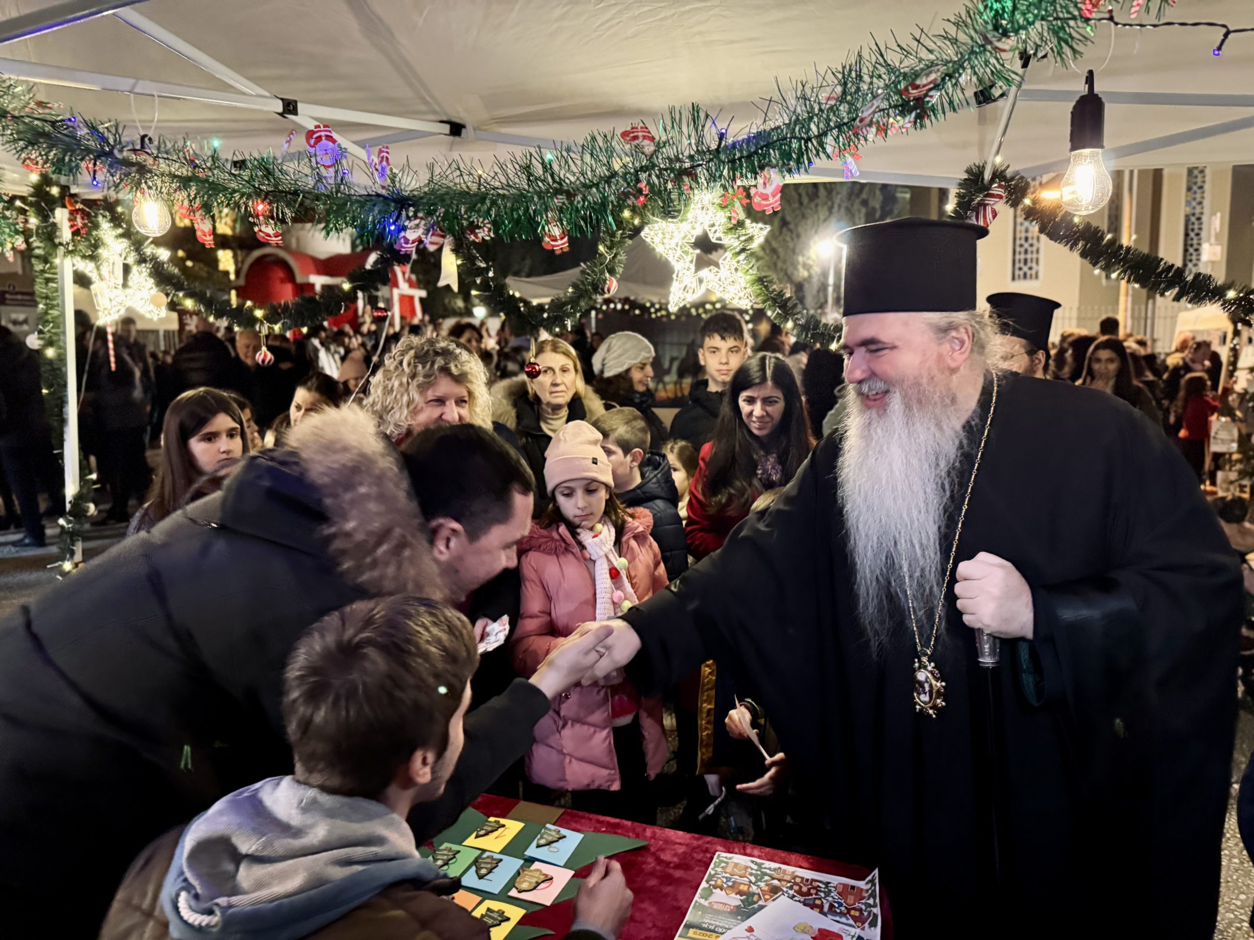 Υλοποιώντας το σύνθημα του Σεβασμιωτάτου ποιμενάρχου κ. Ιουστίνου «Η Εκκλησία στον δρόμο», οι κατηχητές και οι κατηχήτριες, μαζί με τα κατηχητόπουλα, προετοίμασαν, με πολύ κόπο και μεράκι, ένα πανηγύρι χριστουγεννιάτικης χαράς, το οποίο και έστησαν σε έναν από τους πιο πολυσύχναστους δρόμους της Καλαμαριάς.