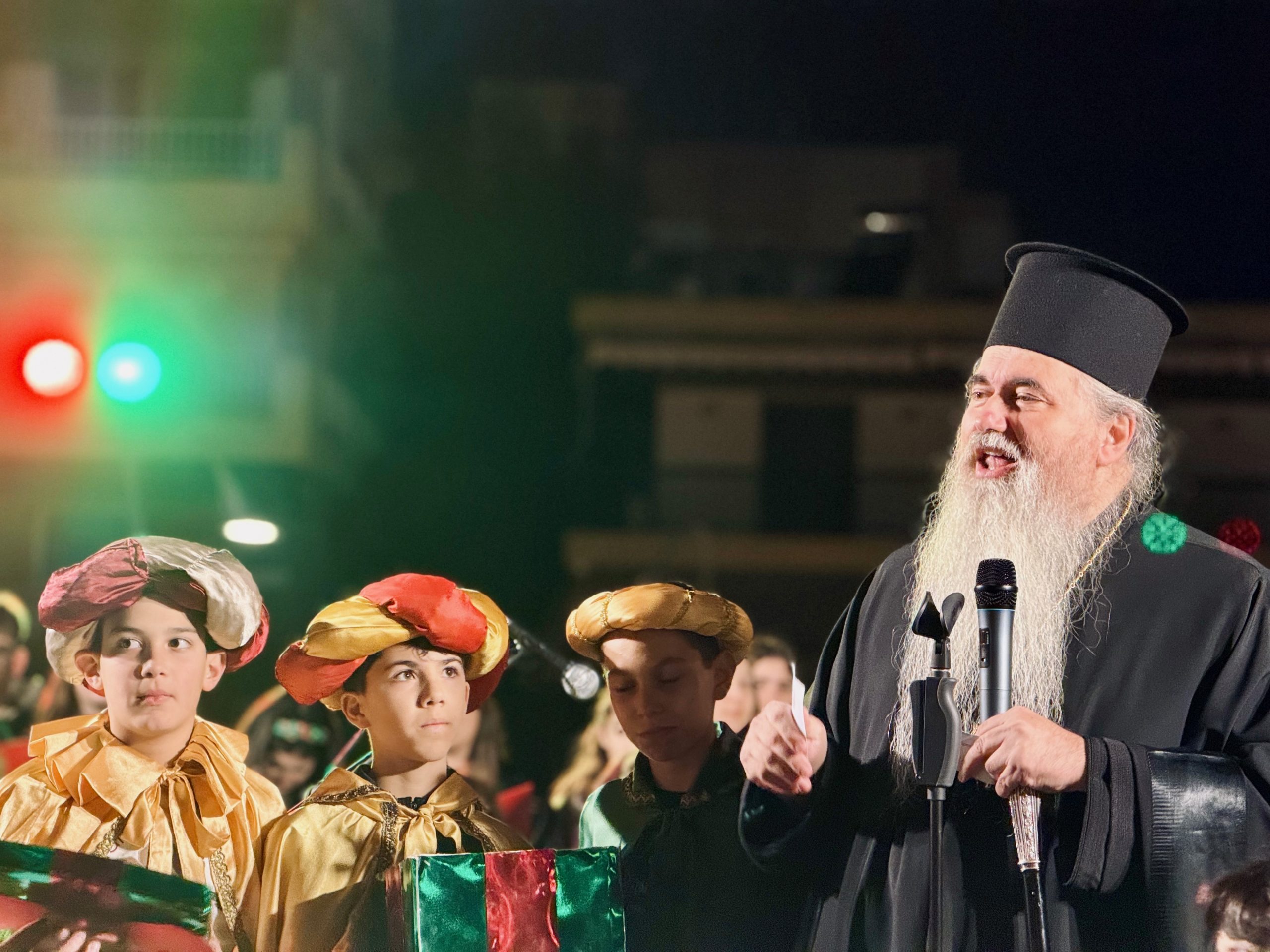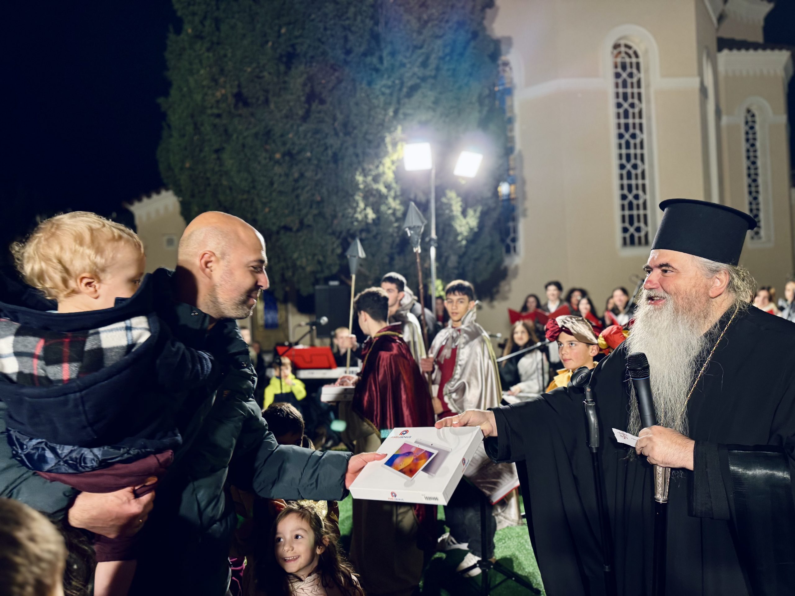 Η εκδήλωση ολοκληρώθηκε με σύντομο χαιρετισμό του οικείου Ποιμενάρχου, ο οποίος ευχαρίστησε θερμά τα παιδιά και τους γονείς τους για τη συμμετοχή τους, καθώς και όλους όσοι συνέβαλαν στην άρτια οργάνωση και επιτυχή διεξαγωγή της εορτής, απηύθυνε εγκάρδιες ευχές προς όλους για καλά και ευλογημένα Χριστούγεννα, γεμάτα φως, αγάπη και ελπίδα.