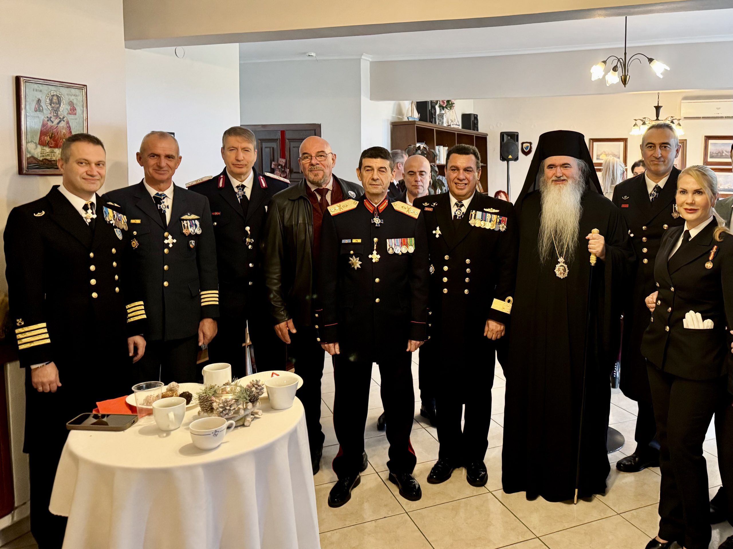Μετά το πέρας της Θείας Λειτουργίας, ο Σεβασμιώτατος, παρέστη στην καθιερωμένη δεξίωση, που διοργανώνει, με αφορμή την εορτή του Πολεμικού Ναυτικού, ο Ναυτικός Σταθμός Βορείου Ελλάδος, ο οποίος εδρεύει στην Καλαμαριά.