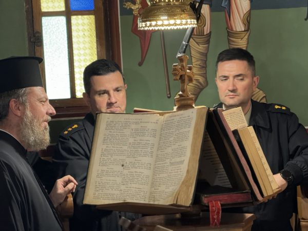 Στο τέλος, διένειμε σε όλους τους παρευρισκομένους μικρά ευλογία, την οποία είχε ετοιμάσει ο δραστήριος και φιλόξενος στρατιωτικός Ιερεύς π. Δημήτριος Παπαστεργίου.