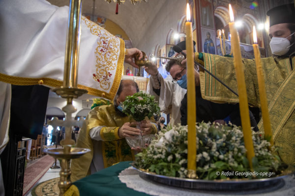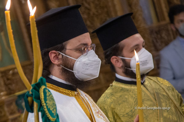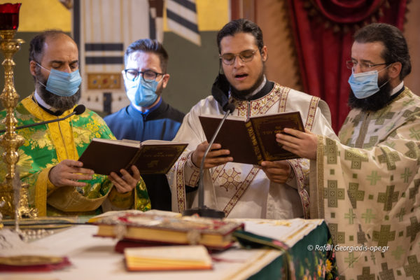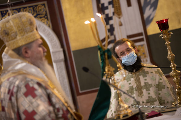 Τον οικείο ποιμενάρχη πλαισίωσαν οι ιερείς του Καθεδρικού Ναού, Πρωτ. Δημήτριος Κατζιγκάς Προϊστάμενος, πρεσβ. Ηλίας Παππάς εφημέριος και οι διάκονοι της Μητροπόλεως.