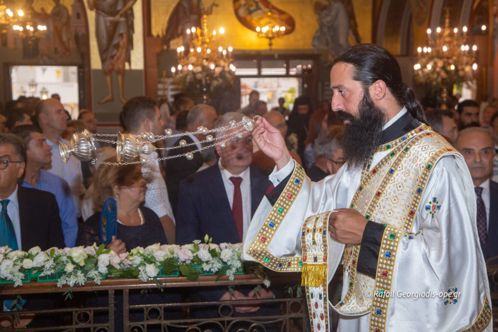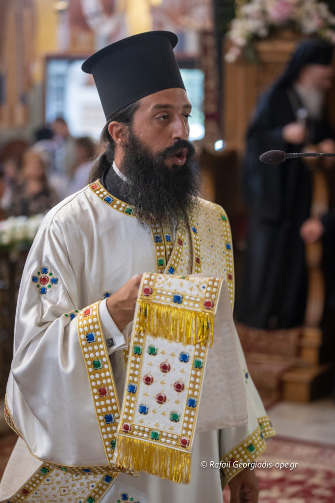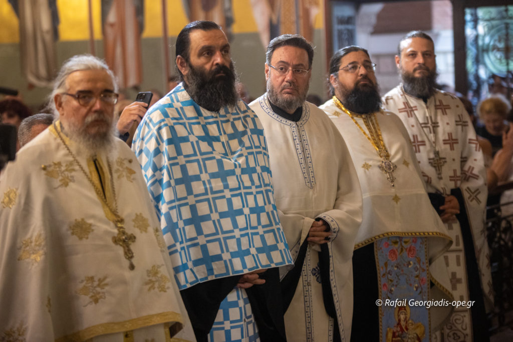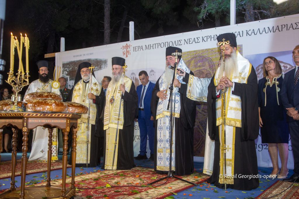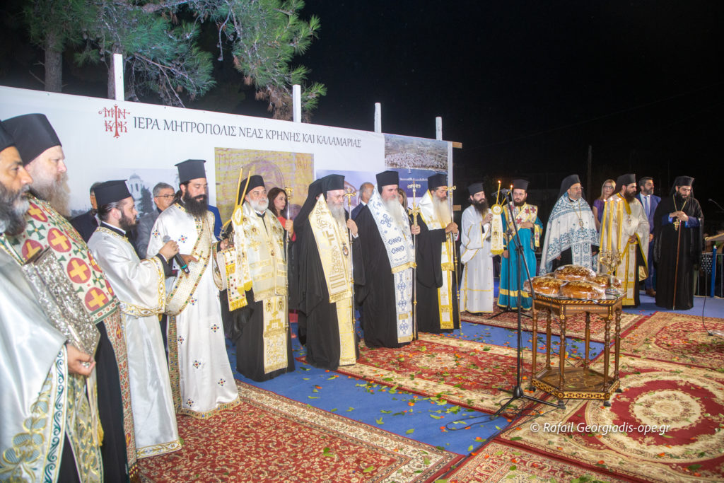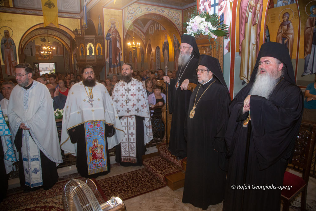 Του πανηγυρικού πολυαρχιερατικού Εσπερινού χοροστάτησε ο Μητροπολίτης Φθιώτιδος κ.Συμεών, συγχοροστατούντων του Μητροπολίτη Ναυπάκτου και Αγίου Βλασίου κ. Ιεροθέου, του Αρχιεπισκόπου Ιόππης κ. Δαμασκηνού, Μητροπολίτη Ειρηνουπόλεως κ. Δημητρίου, Θεοφιλεστάτου Επισκόπου Αλικαρνασσού κ. Ανδριανού, του οικείου Ποιμενάρχου Μητροπολίτου Νέας Κρήνης και Καλαμαριάς κ. Ιουστίνου και του συμπροσευχομένου στο ιερό βήμα Μητροπολίτη Βρυούλων κ. Παντελεήμονος.