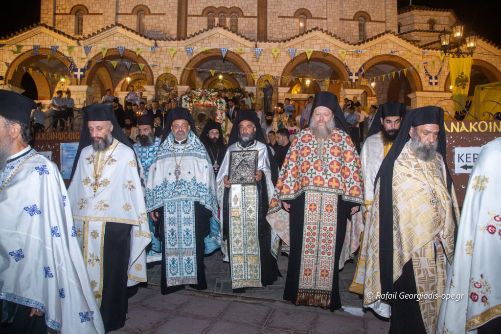 23/08/2023 23/08/2023 Κάθε ηλικίας άνθρωποι από ολόκληρη την Ελλάδα και ειδικότερα από τη Μακεδονία προσέρχονται στη Νέα Μηχανιώνα για να προσευχηθούν στο Θεομητορικό σέμνωμα της Παναγίας Φανερωμένης. Νέα Μηχανιώνα Ραφαήλ Γεωργιάδης/ope.gr   Του πανηγυρικού πολυαρχιερατικού Εσπερινού χοροστάτησε ο Μητροπολίτης Φθιώτιδος κ.Συμεών, συγχοροστατούντων του Μητροπολίτη Ναυπάκτου και Αγίου Βλασίου κ. Ιεροθέου, του Αρχιεπισκόπου Ιόππης κ. Δαμασκηνού, Μητροπολίτη Ειρηνουπόλεως...