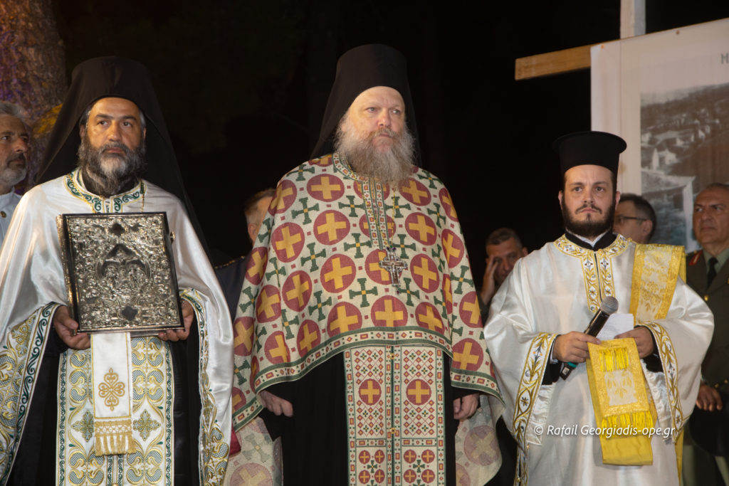 “Σας ευχαριστούμε για την χαρά και την ευλογία να βρεθουμε σήμερα στο κορυφαίο Θεομητορικό προσκύνημα της συμβασιλέυουσας Θεσσαλονίκης, και να λιτανεύσουμε και εμείς απόψε, να συμμετάσχουμε  σε μια λιτανεία η οποία δε θα γίνει απόψε, ξεκίνησε πριν εκατό χρόνια και δεν έχει τελειώσει, θα ολοκληρωθεί όταν δικαιωθεουν οι καημοί και οι πόνοι της προσφυγιάς και της Ρωμιοσύνης”.