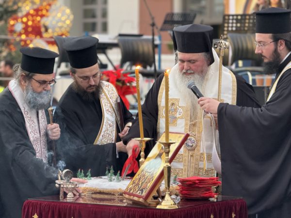 Στην κατάμεστη, από πλήθος λαού, πλατεία του “Προσφυγικού Ελληνισμού”, στην καρδιά της Καλαμαριάς, πραγματοποιήθηκε χθες, Σάββατο 30 Δεκεμβρίου, η κοπή της Βασιλόπιτας, της Ιεράς Μητροπόλεως Νέας Κρήνης και Καλαμαριάς.