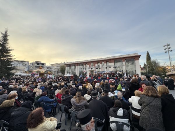 Στην κατάμεστη, από πλήθος λαού, πλατεία του “Προσφυγικού Ελληνισμού”, στην καρδιά της Καλαμαριάς, πραγματοποιήθηκε χθες, Σάββατο 30 Δεκεμβρίου, η κοπή της Βασιλόπιτας, της Ιεράς Μητροπόλεως Νέας Κρήνης και Καλαμαριάς.