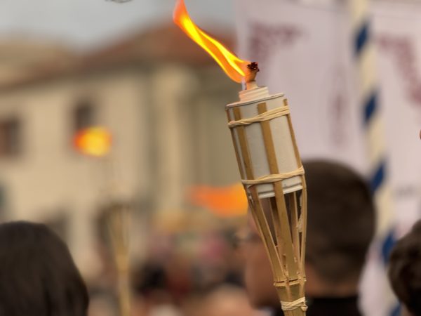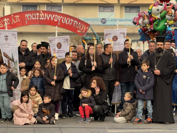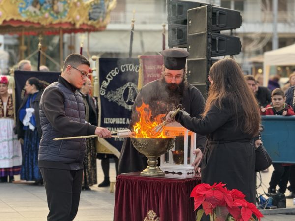 Εν συνεχεία, υπό τον ήχο του τραγουδιού «Σκυτάλη», οι Σεβασμιώτατοι Μητροπολίτες μεταλαμπάδευσαν φλόγα σε 50 δάδες, όσα και τα χρόνια της Μητροπόλεως, τις οποίες κρατούσαν παιδιά των ενοριών.