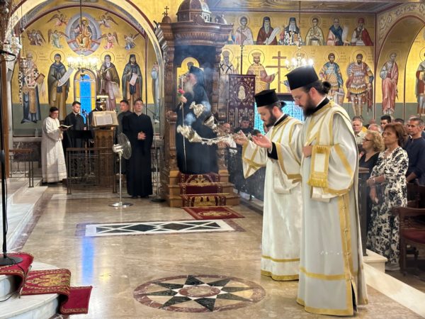 Του εσπερινού της Κυριακής και της ιεράς παρακλήσεως προέστη ο οικείος ποιμενάρχης, Μητροπολίτης Νέας Κρήνης και Καλαμαριάς κ. Ιουστίνος, συνευχομένου του, εν Καλαμαριά παρεπιδημούντος, Θεοφιλεστάτου Επισκόπου Αλικαρνασσού κ. Ανδριανού.