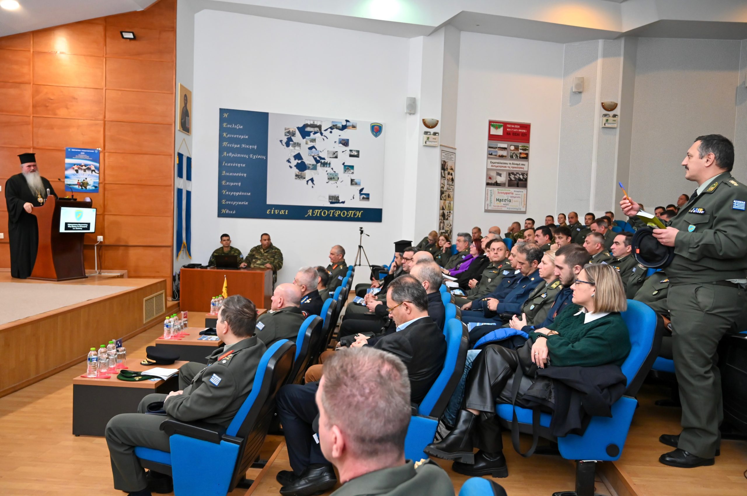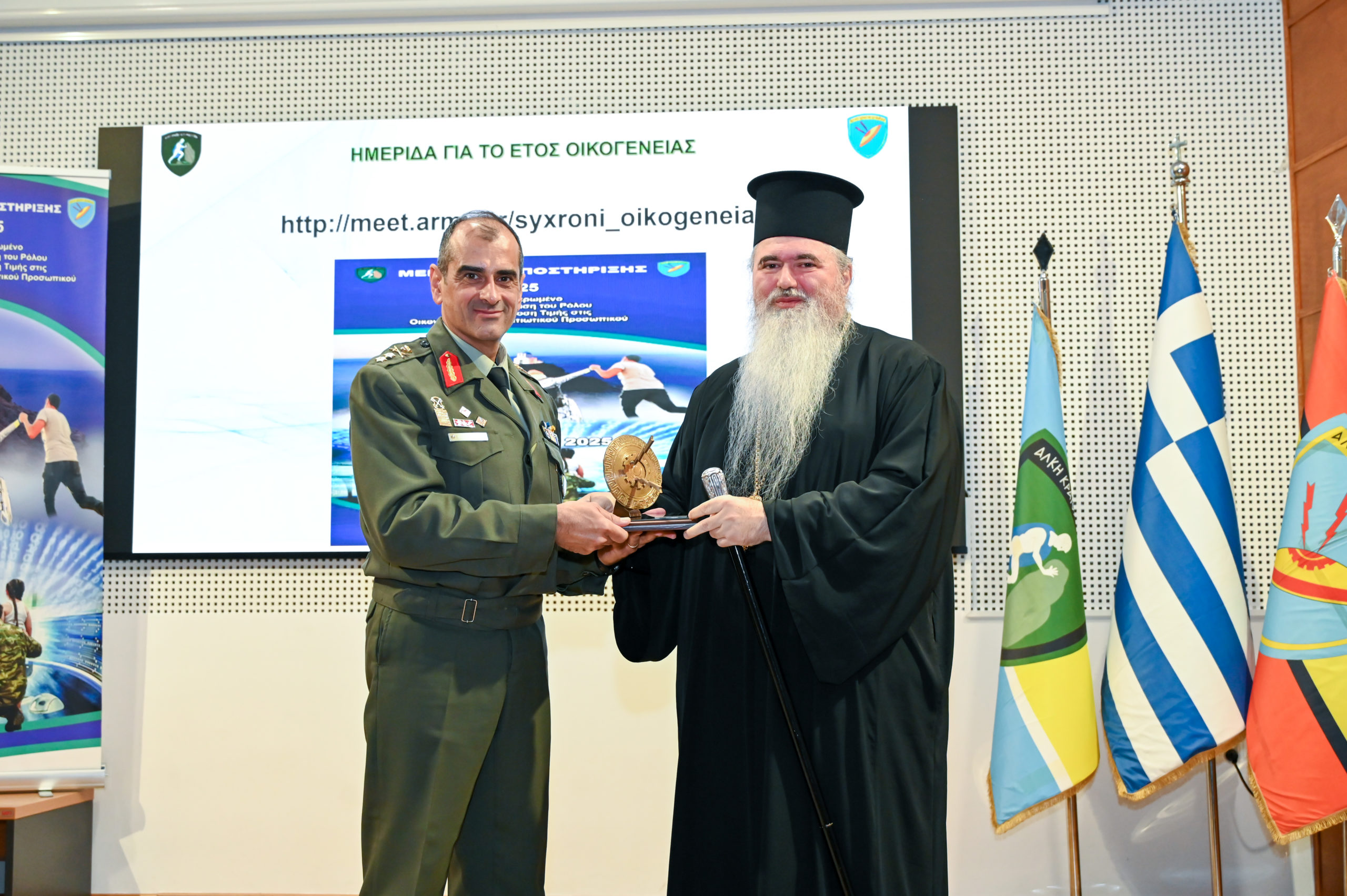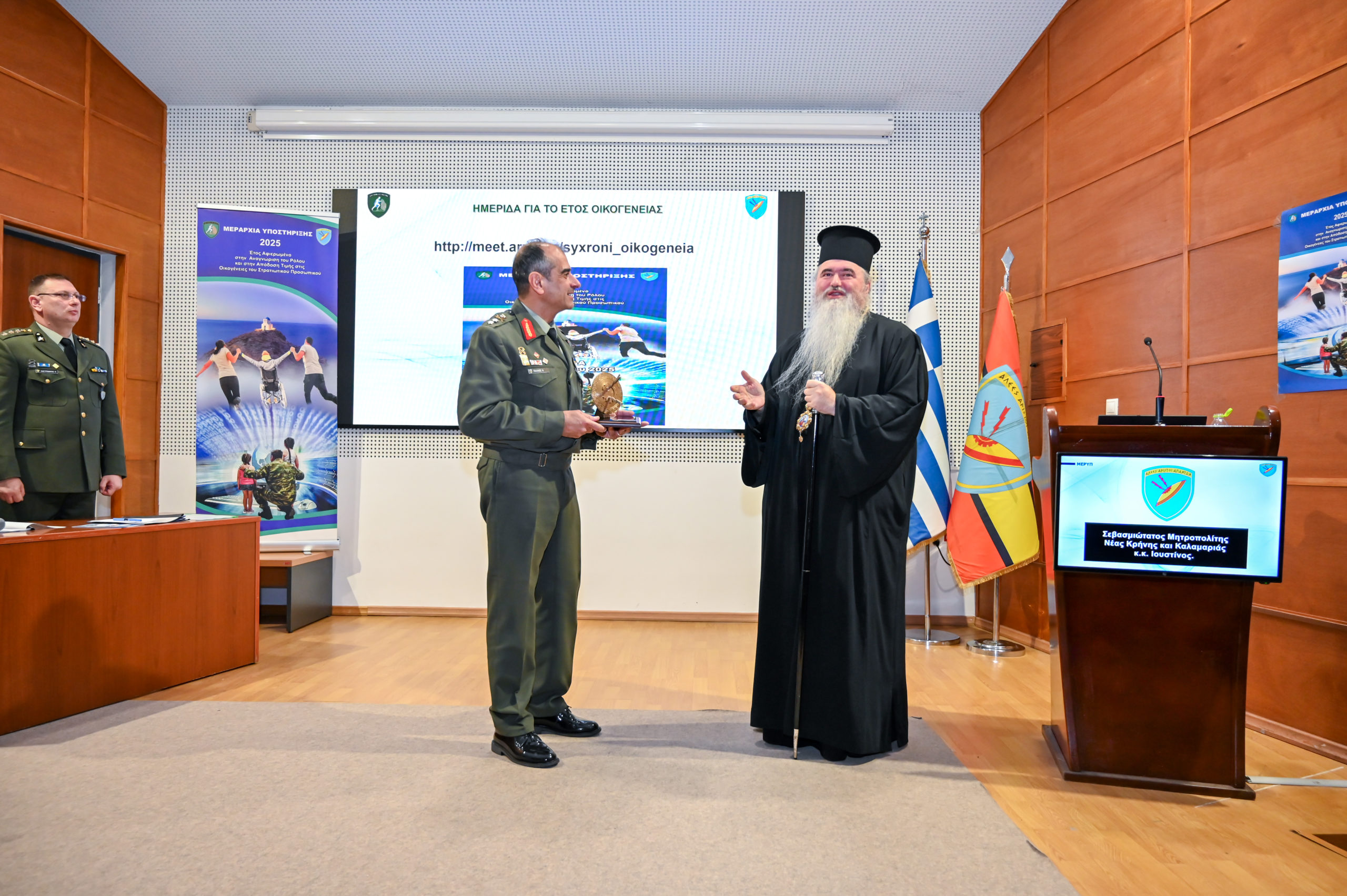 Μετά το πέρας της εισηγήσεως του Σεβασμιωτάτου, ο Διοικητής της ΜΕΡΥΠ, Υπτγος κ. Νικόλαος Γαλλιός, προσέφερε τιμητικά στον Σεβασμιώτατο το έμβλημα της Μεραρχίας Υποστηρίξεως.