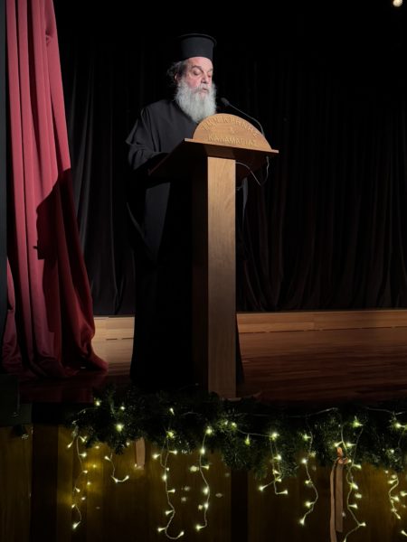 Τέλος, τον λόγο έλαβε ο Σεβασμιώτατος Ποιμενάρχης, κ. Ιουστίνος, ο οποίος, εμφανώς ενθουσιασμένος και συγκινημένος, ευχαρίστησε θερμά και συνεχάρη όλους όσους συνέβαλαν και κοπίασαν για την άρτια πραγματοποίηση της εορτής. Κάλεσε δε όλους τους πιστούς, αυτές τις άγιες ημέρες, να γίνουν και πάλι παιδιά, όχι στην ηλικία αλλά στην καλοσύνη και στην αγαθότητα. Να νηπιάσουν στην κακία, να νηπιάσουν στον εγωισμό και με καθαρή πίστη να ετοιμάσουν τις καρδιές τους για να υποδεχθούν τον τεχθέντα Ιησού Χριστό.