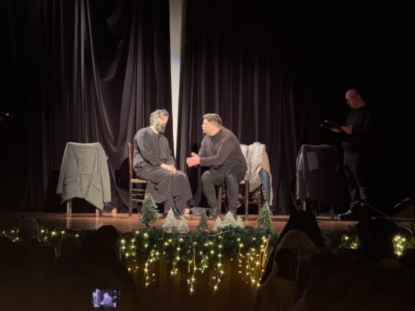Εν συνεχεία, παρουσιάστηκε το θεατρικό μονόπρακτο του Κωστή Μπαστιά «Ο Χριστός ξαναγυρίζει», σε σκηνοθεσία του υπευθύνου της θεατρικής ομάδας της Μητροπόλεως «Άγιος Πορφύριος ο Μίμος», κ. Ιωάννου Νικόλτσιου.