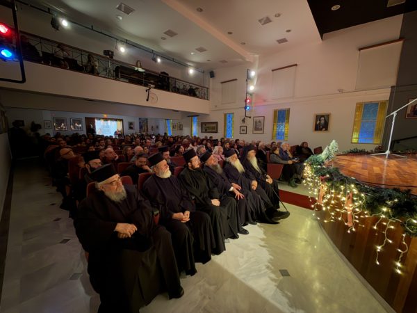 Η εκδήλωση ξεκίνησε με βυζαντινούς ύμνους της εορτής των Χριστουγέννων, από την βυζαντινή χορωδία της Ιεράς Μητροπόλεως, υπό την διεύθυνση του Πρωτοψάλτου του Ιερού Ναού Ευαγγελισμού της Θεοτόκου και υποδιευθυντού της Σχολής Βυζαντινής Μουσικής της Μητροπόλεως, κ. Κωνσταντίνου Μαρινόπουλου.