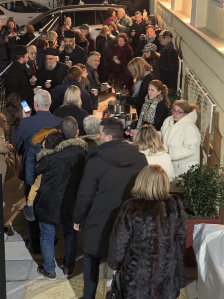 Η εκδήλωση ολοκληρώθηκε με προσφορά ζεστού κρασιού και νηστίσιμων κερασμάτων, υπό τον ήχο χριστουγεννιάτικων καλάντων.