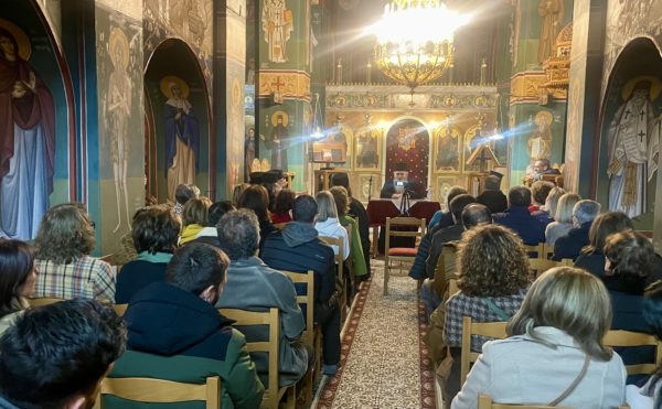 Παρά τις δυσμενείς καιρικές συνθήκες (έβρεχε συνεχώς καθόλη τη διάρκεια της ημέρας), ο κόσμος για άλλη μία φορά γέμισε κάθε χώρο του Ιερού Ναού και παρακολούθησε με μεγάλο ενδιαφέρον την ομιλία.