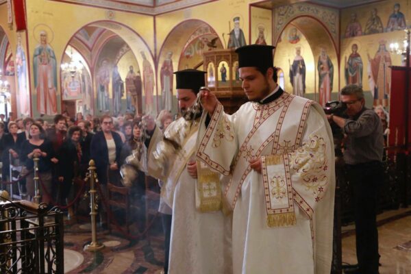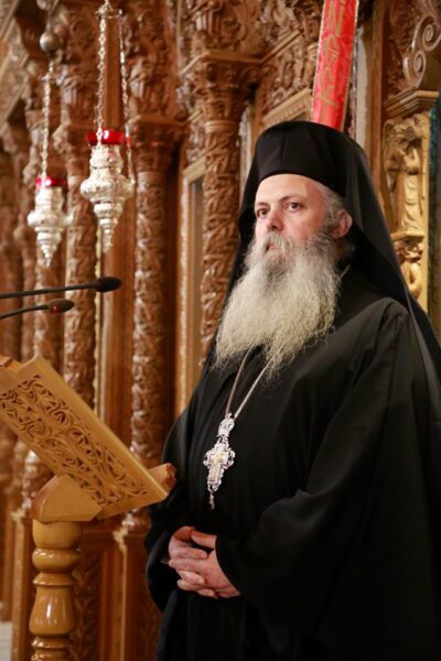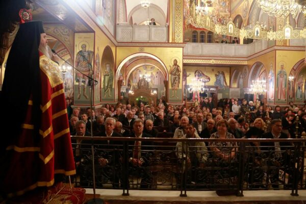 Στον πανηγυρικό Αρχιερατικό εσπερινό, προεξήρχε ο Σεβασμιώτατος κ. Ιουστίνος, ενώ τη διακονία του λόγου ανέθεσε στον ιεροκήρυκα της Ιεράς Μητροπόλεως Πατρών, Αρχιμ. Χρυσόστομο Μυτιλήνη.