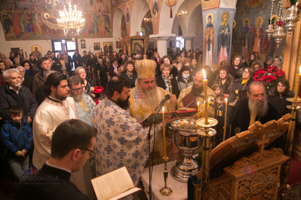 Ο Σεβασμιώτατος τέλεσε τη Θεία Λειτουργία, με τη συμμετοχή του Γενικοού Αρχιερατικού Επιτρόπου της Ι.Μ. Πρωτ. Στυλιανού Σαρίδη, των Εφημερίων του Ναού και των Διακόνων καθώς και την παρουσία πλήθους πιστών που αγιάστηκαν την ημέρα αυτή.