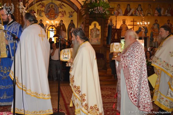 Στην Πανηγυρική Θεία Λειτουργία συμμετείχαν ο Παναγιώτατος Μητροπολίτης Θεσσαλονίκης κ. Φιλόθεος, ο Σεβασμιώτατος Μητροπολίτης Ν. Ιωνίας, Φιλαδελφείας και Ν. Χαλκηδόνας κ. Γαβριήλ, ο Σεβασμιώτατος Μητροπολίτης Ν. Ιερσέης κ. Απόστολος, ο Θεοφιλέστατος Επίσκοπος Μπουκόμπας και Τανζανίας κ. Χρυσόστομος, ο Θεοφιλέστατος Επίσκοπος Ναζιανζού κ. Αθηναγόρας και ο Επιχώριος Μητροπολίτης Ν. Κρήνης και Καλαμαριάς κ. Ιουστίνος.