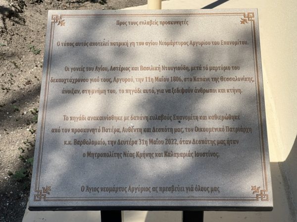 Μετά το απαραίτητο παγωτό, η σύναξη επισκέφθηκε το πηγάδι του αγίου Αργυρίου, το οποίο διάνοιξαν οι γονείς του αγίου για να τιμήσουν τη μνήμη του παιδιού τους και πρόσφατα εγκαινιάσθηκε από την Α.Θ.Π. τον Οικουμενικό Πατριάρχη Βαρθολομαίο. Το πηγάδι δεν έχει στερέψει και είναι το μόνο που έχει νερό στην περιοχή.