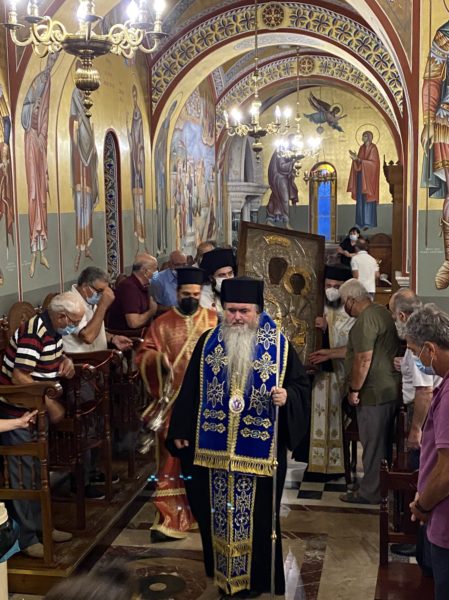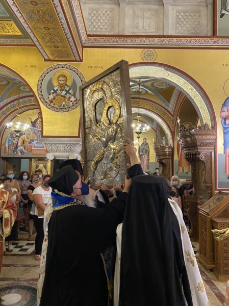 Όπως και κάθε χρόνο έτσι και φέτος, στην τελευταία παράκληση της Παναγίας, στις 13 Αυγούστου 2021, όπως θέσπισε ο Σεβ. Μητροπολίτης και Καλαμαριάς κ. Ιουστίνος, εορτάστηκαν τα “βγάσματα” της Ιεράς Εικόνος, δηλαδή η έξοδός της από το μόνιμο προσκυνητάρι και η τοποθέτησή της στο προσωρινό.