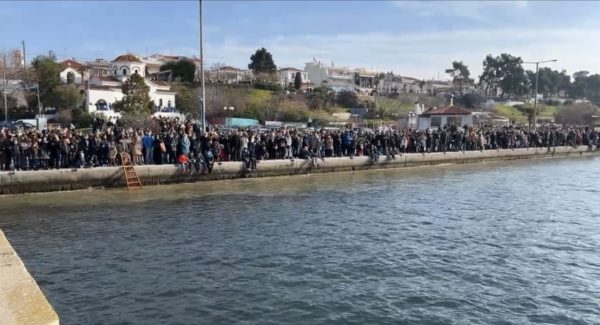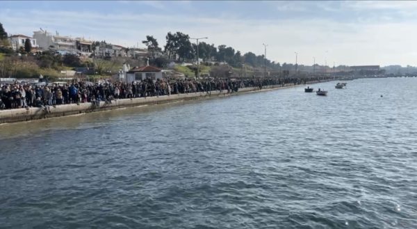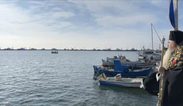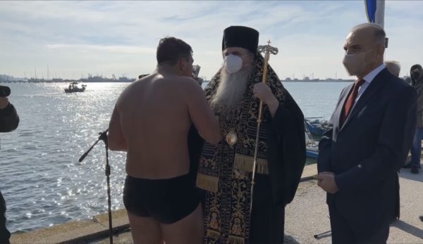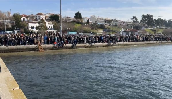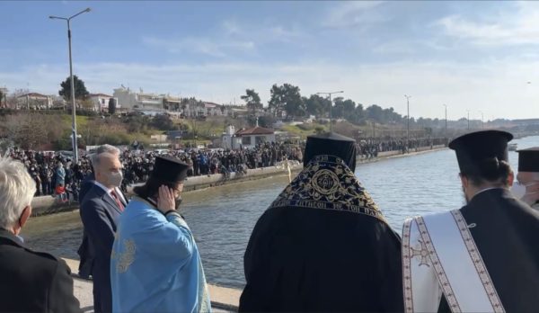 Πλήθος κόσμου κατέκλυσε το λιμάνι και πολλοί νέοι αψηφώντας το κρύο βούτηξαν στα παγωμένα νερά για να λάβουν την ευλογία της ημέρας.