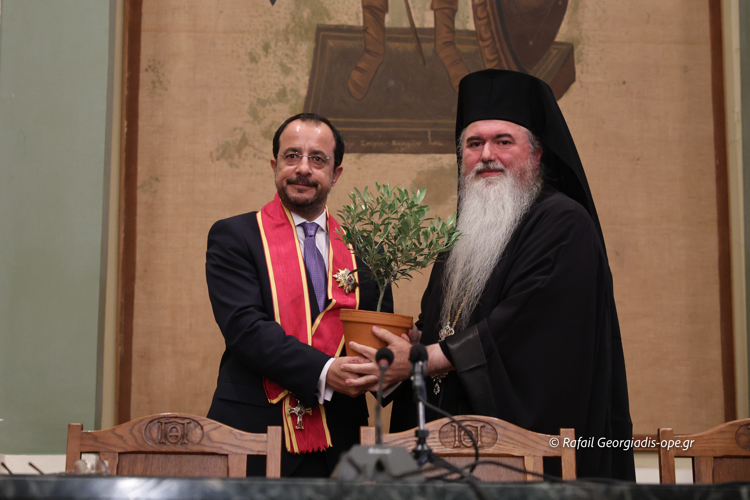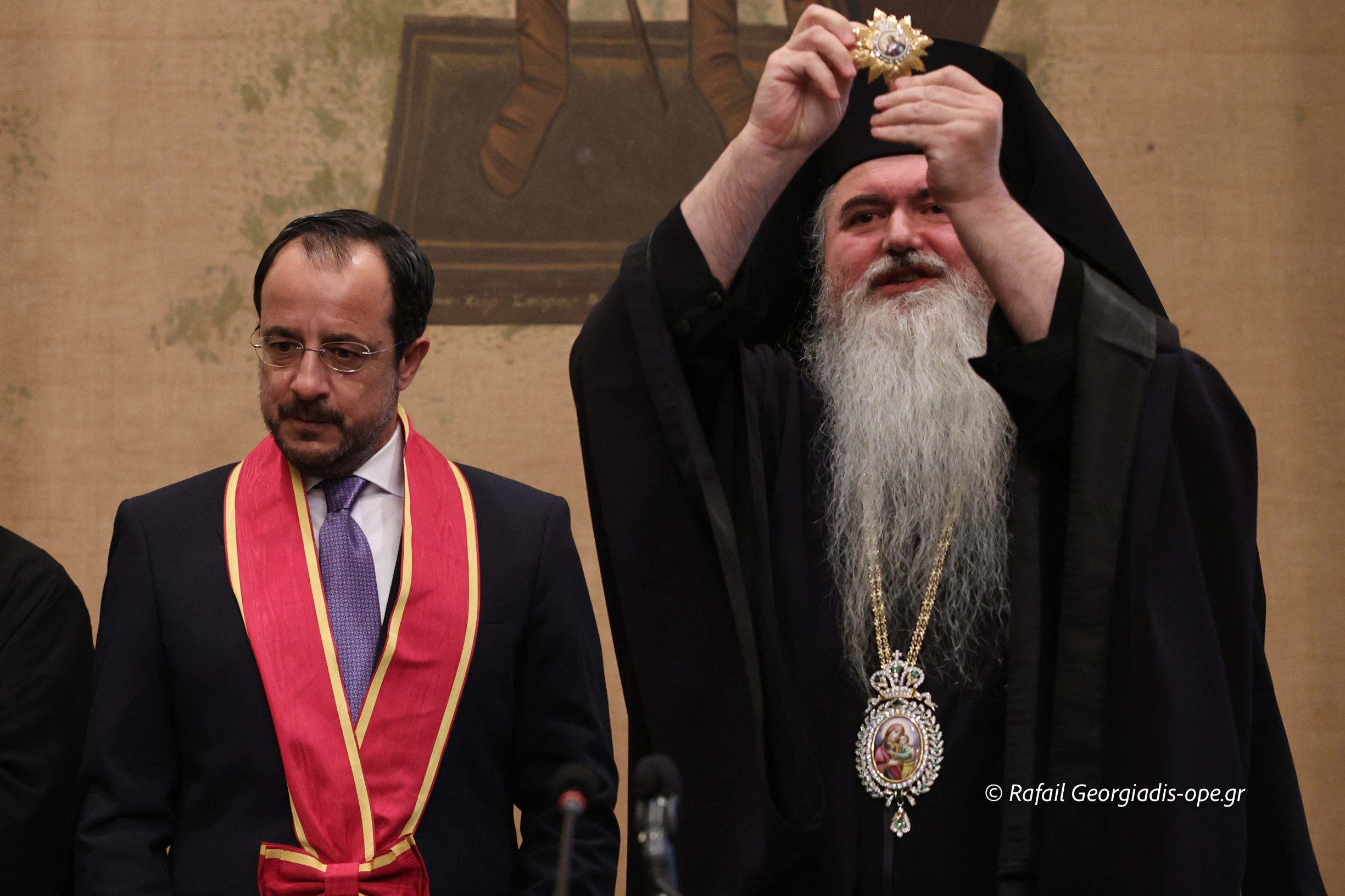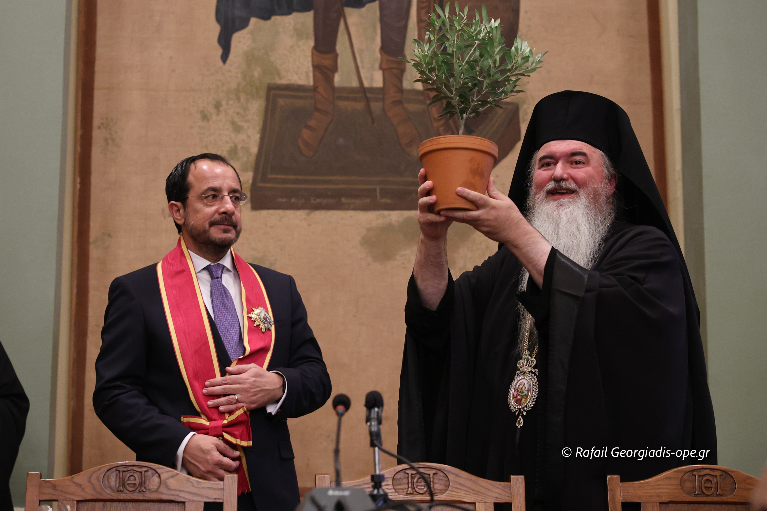 Εὐχαριστῶ εὐγνωμόνως τούς Προκαθημένους τῶν Ὀρθοδόξων Ἐκκλησιῶν Κύπρου καί Ἑλλάδος Μακαριωτάτους Ἀρχιεπισκόπους Κύπρου κ. Γεώργιο καί Ἀθηνῶν καί πάσης Ἑλλάδος κ. Ἱερώνυμο, καί τά σεπτά μέλη τῶν ὑπ’ Αὐτῶν Ἱερῶν Συνόδων γιά τήν ἀποστολή στίς ἐκδηλώσεις τῶν τιμίων ἐκπροσώπων τους, Μητροπολίτου Κωνσταντίας καί Ἀμμοχώστου κ. Βασιλείου καί Ὕδρας, Σπετσῶν καί Αἰγίνης κ. Ἐφραίμ, ἀντιστοίχως, ὡς καί τούς παρόντες Ἁγίους Ἀρχιερεῖς καί τίς συνοδεῖες τους.