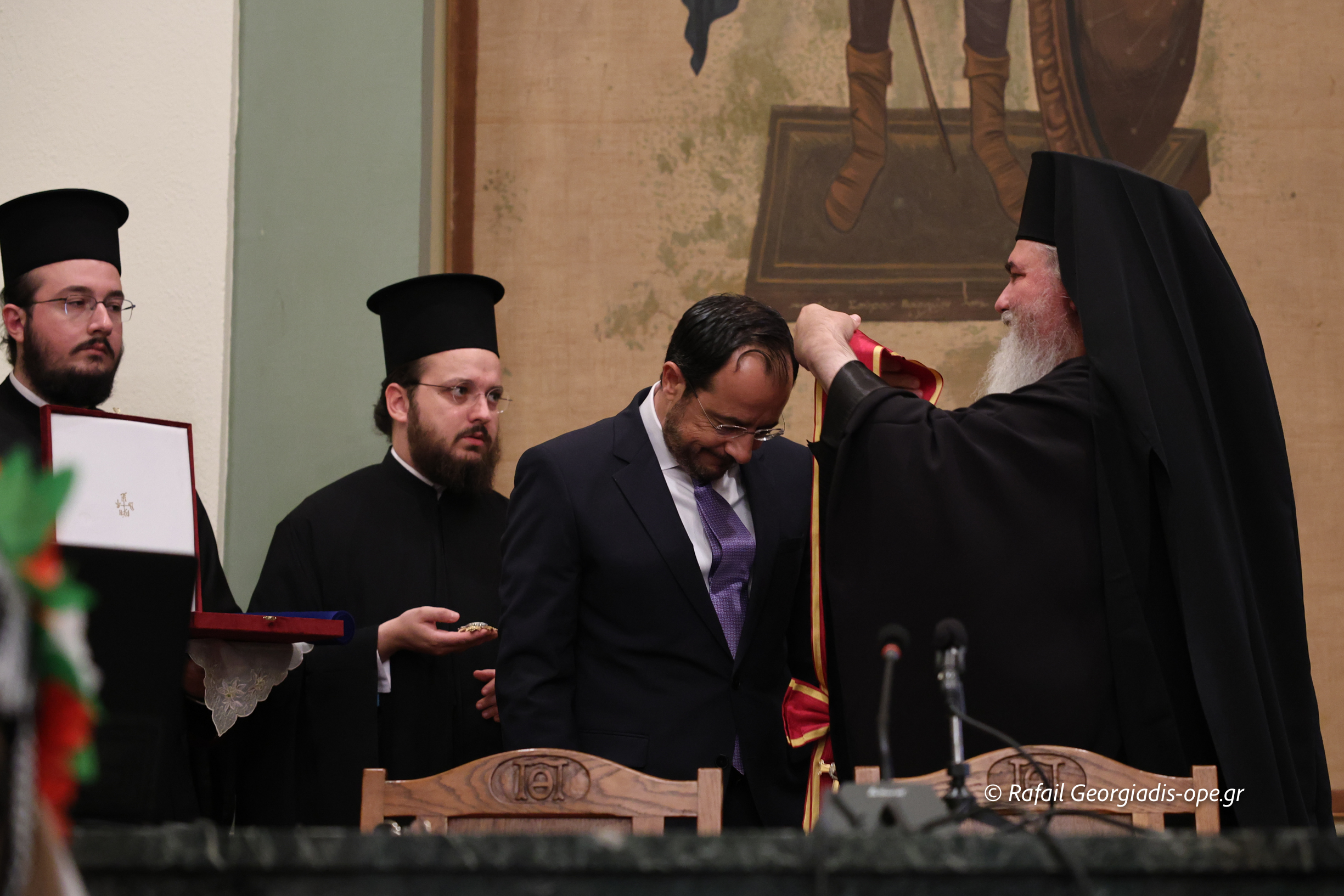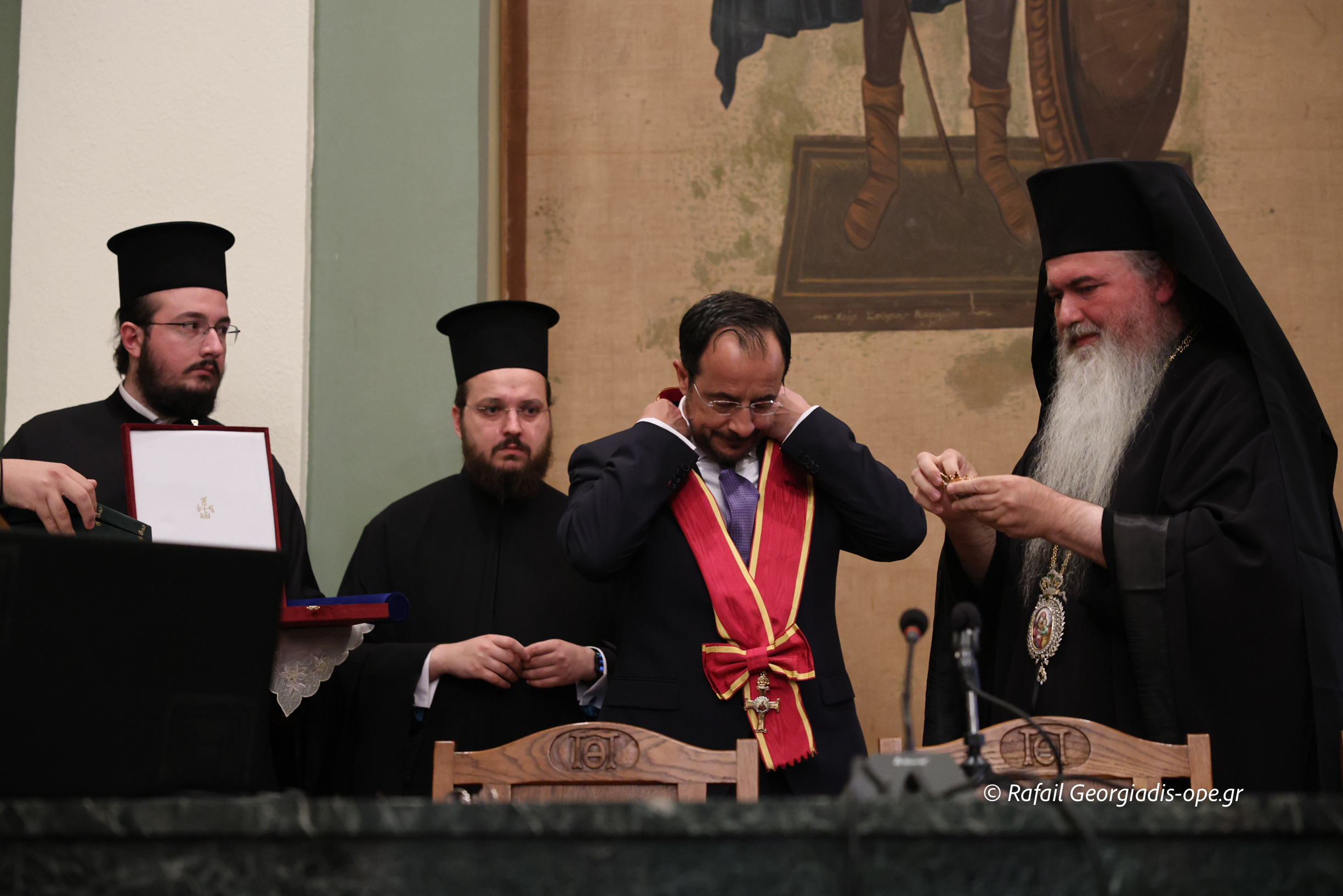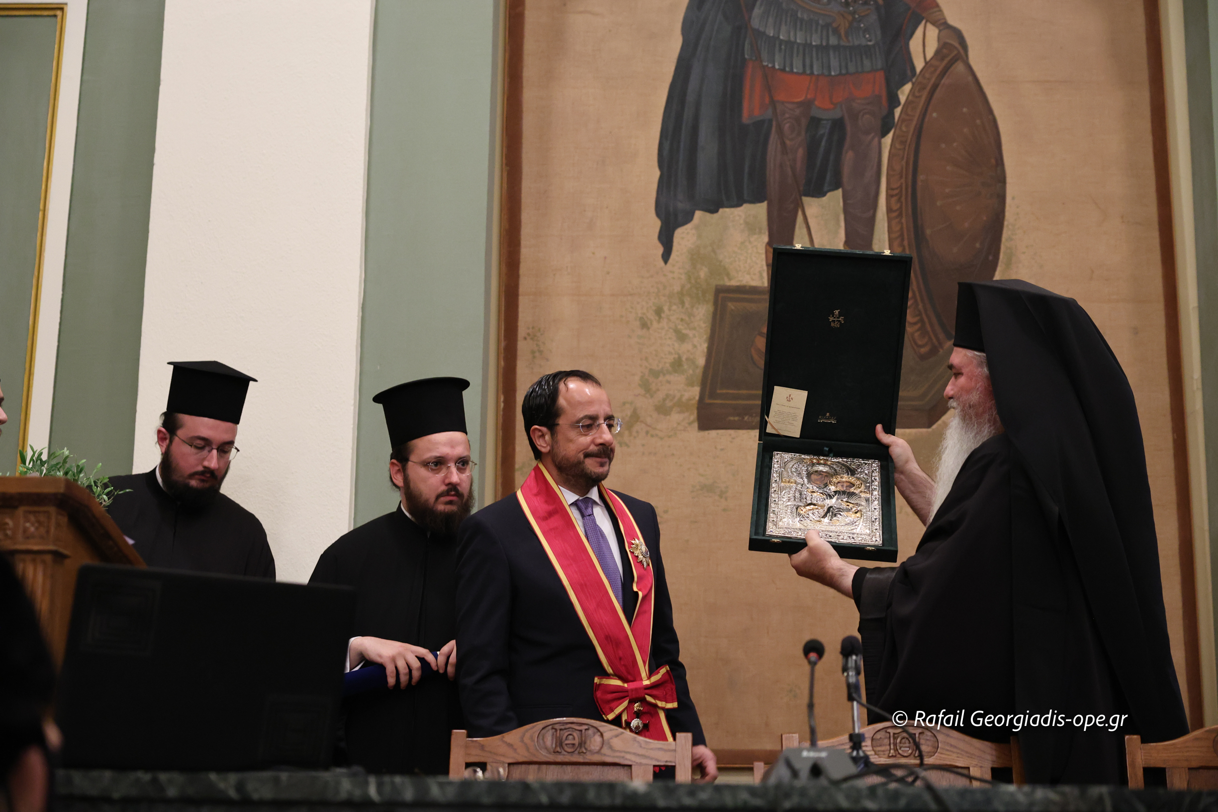 Εὐχαριστῶ εὐγνωμόνως τούς Προκαθημένους τῶν Ὀρθοδόξων Ἐκκλησιῶν Κύπρου καί Ἑλλάδος Μακαριωτάτους Ἀρχιεπισκόπους Κύπρου κ. Γεώργιο καί Ἀθηνῶν καί πάσης Ἑλλάδος κ. Ἱερώνυμο, καί τά σεπτά μέλη τῶν ὑπ’ Αὐτῶν Ἱερῶν Συνόδων γιά τήν ἀποστολή στίς ἐκδηλώσεις τῶν τιμίων ἐκπροσώπων τους, Μητροπολίτου Κωνσταντίας καί Ἀμμοχώστου κ. Βασιλείου καί Ὕδρας, Σπετσῶν καί Αἰγίνης κ. Ἐφραίμ, ἀντιστοίχως, ὡς καί τούς παρόντες Ἁγίους Ἀρχιερεῖς καί τίς συνοδεῖες τους.