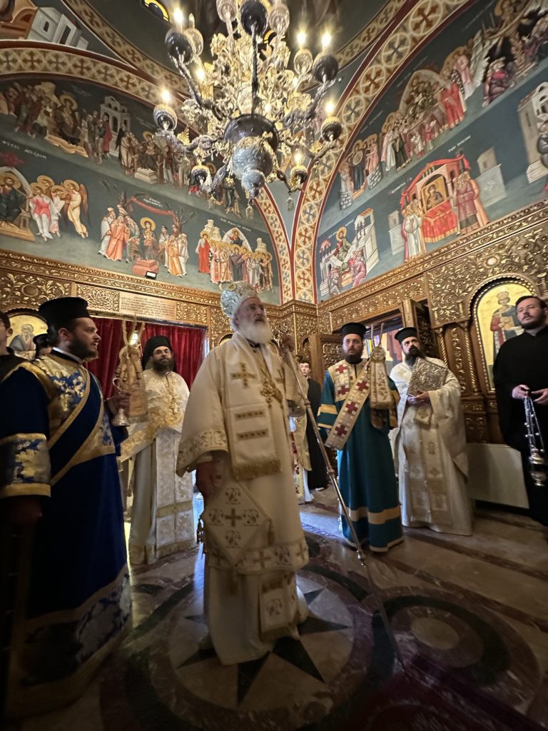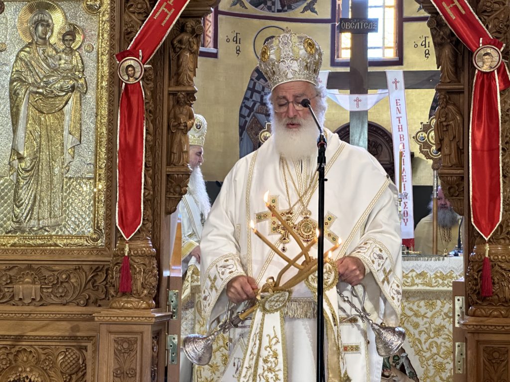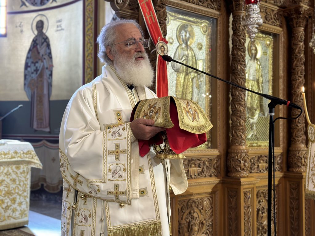 Αφ’ εσπέρας τελέστηκε ο Πανηγυρικός Εσπερινός, στον οποίο χοροστάτησε και κήρυξε τον θείο λόγο ο Μητροπολίτης Βρυούλων κ. Παντελεήμων.