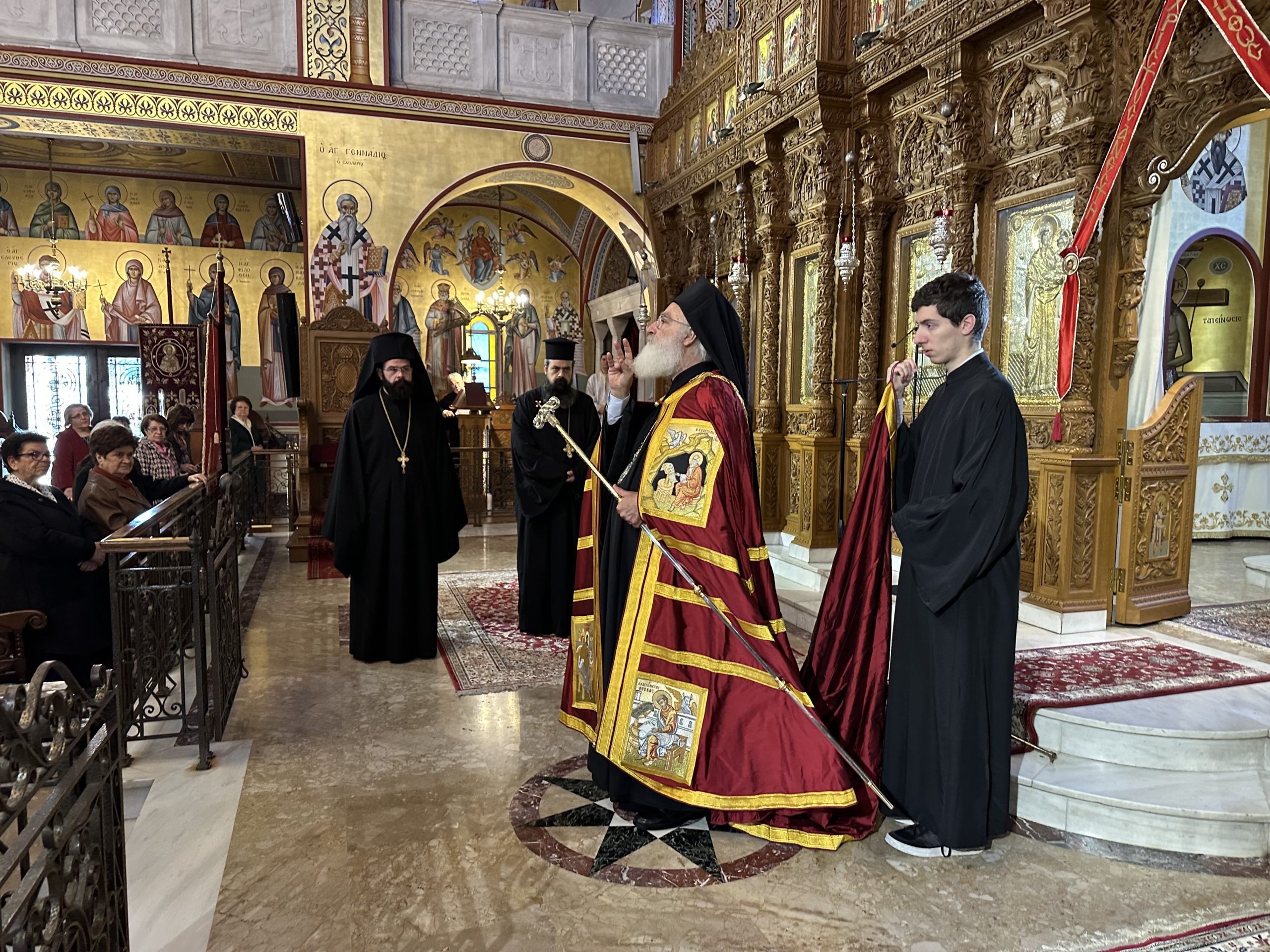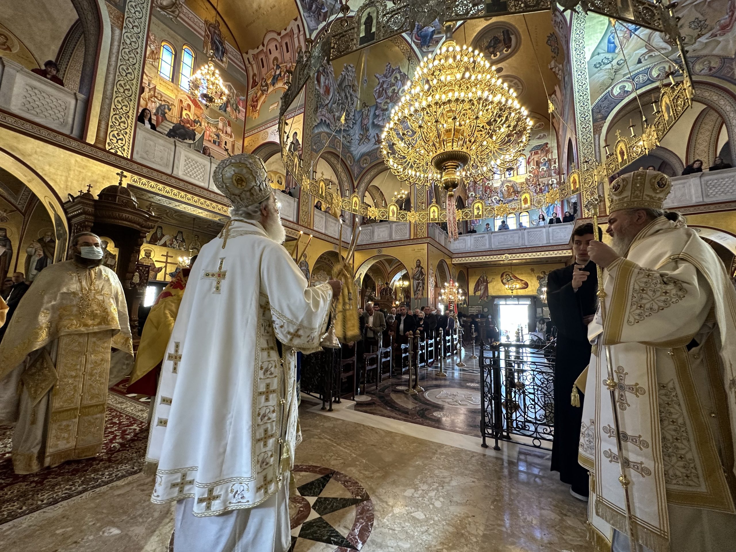 Την κυριώνυνο ημέρα τελέστηκε δισαρχιερατική πανηγυρική Θεία Λειτουργία, προεξάρχοντος του προσκεκλημένου Αρχιερέως Μητροπολίτου Αρκαλοχωρίου, Καστελλίου και Βιάννου κ.κ. Ανδρέου, συλλειτουργούντος δε του οικείου ποιμενάρχου, Μητροπολίτου Νέας Κρήνης και Καλαμαριάς κ. Ιουστίνου.