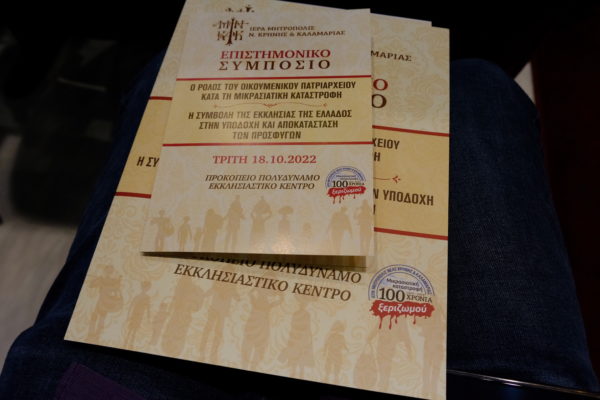 Ξεκίνησε σήμερα, Τρίτη 18 Οκτωβρίου 2022, στο Προκόπειο Πολυδύναμο Εκκλησιαστικό Κέντρο της Ιεράς Μητρόπολης Νέας Κρήνης και Καλαμαριάς το επετειακό επιστημονικό συμπόσιο με τίτλο: «Ο ρόλος του Οικουμενικού Πατριαρχείου κατά τη Μικρασιατική Καταστροφή και η συμβολή της εκκλησίας της Ελλάδος στην υποδοχή και αποκατάσταση των προσφύγων».