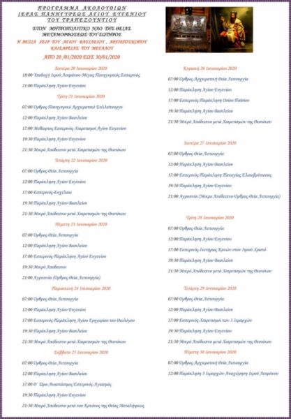 Ακολουθεί το πρόγραμμα των Ιερών Ακολουθιών: