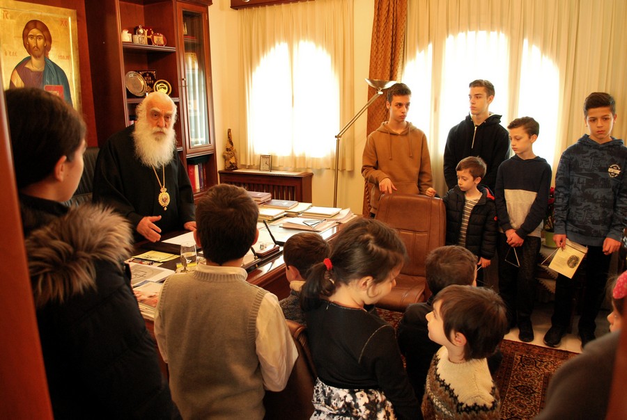 Ο Σεβασμιώτατος ευχήθηκε στα παιδιά να έχουν υγεία και καλή πρόοδο στα μαθήματα τους και τους προσέφερε μικρή “ευλογία”.