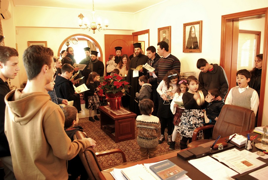 Όπως συμβαίνει τα τελευταία χρόνια έτσι κι εφέτος ο Σεβασμιώτατος Μητροπολίτης Νέας Σμύρνης κ. Συμεών δέχθηκε σήμερα τα παιδιά των Ιερέων της Μητροπόλεως όπου του έψαλαν τα κάλαντα.