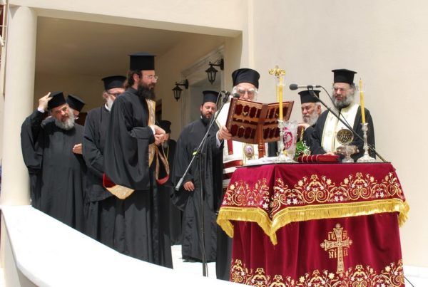 Μετά ἀπό τήν εὐχαριστήρια θεία Λειτουργία γιά τά πενήντα χρόνια ἀπό τήν ἵδρυση τῆς Μητροπόλεώς μας, πού τελέσαμε στόν Μητροπολιτικό Ναό μας, καί τό μνημόσυνο τῶν ἀοιδίμων Ἱεραρχῶν πού διαποίμαναν τήν Τοπική μας Ἐκκλησία, ἐγκαινιάζουμε αὐτή τήν ὥρα καί τό Ἐπισκοπεῖο τῆς Ἱερᾶς Μητροπόλεώς μας.