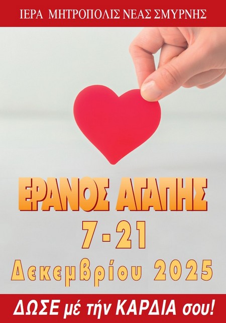 Έρανος Αγάπης στην Ιερά Μητρόπολη Νέας Σμύρνης 7-21 Δεκεμβρίου