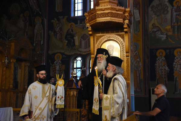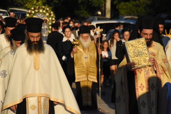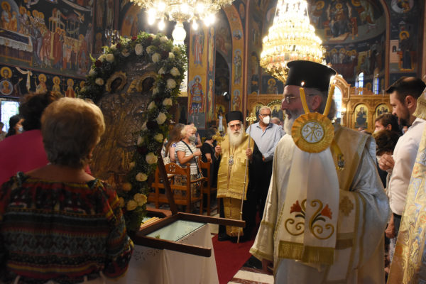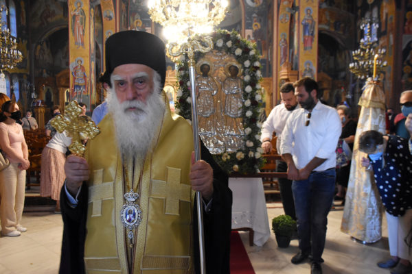 Ο Σεβασμιώτατος χοροστάτησε και στον πανηγυρικό εσπερινό αλλά και στον μεθέορτο εσπερινό, πλαισιούμενος από τους ιερείς του ναού, αλλά και ιερείς γειτονικών ενοριών, που προσήλθαν για να τιμήσουν τους Αγίους. Μετά τον μεθέορτο εσπερινό ακολούθησε λιτάνευση της Ιεράς Εικόνος των Αγίων Αναργύρων στους δρόμους πέριξ του ναού και παράκληση στους Αγίους Αναργύρους.