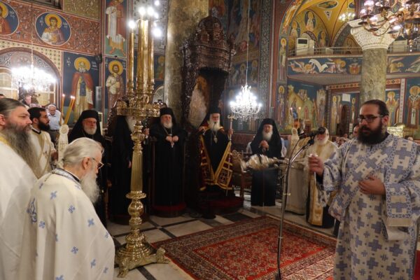 Το θείο λόγο εκήρυξε ο Σεβασμιώτατος Μητροπολίτης Εδέσσης κ. Ιωήλ, ο οποίος αναφέρθηκε στους τρόπους προσέγγισης και «θέασης» του Θεού από τον άνθρωπο, διά της μετανοίας, της αναγνώσεως των Αγίων Γραφών, της ελεημοσύνης και του εσωτερικού φωτισμού, αναλύοντας και ερμηνεύοντας διδακτικώτατα τις έννοιες αυτές, και ευχήθηκε στον Σεβασμιώτατο Μητροπολίτη Νέας Σμύρνης κ. Συμεών για τα ονοματήριά του.