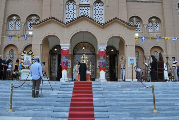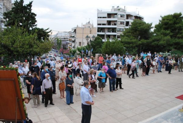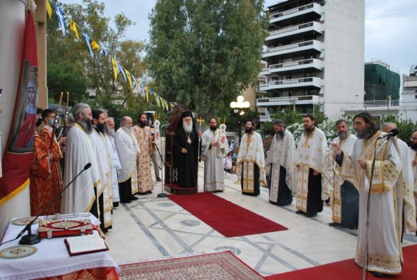 Μεθεόρτιος Εσπερινός εψάλη στον αύλειο χώρο του Μητροπολιτκού Ναού της Αγίας Φωτεινής Νέας Σμύρνης, όπως και πέρυσι, το απόγευμα της Κυριακής στις 7. Αυτό διευκόλυνε περισσότερο τη συμμετοχή των ενοριτών, αλλά και των πιστών που προσήλθαν από όμορες Ενορίες.