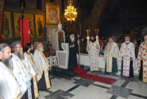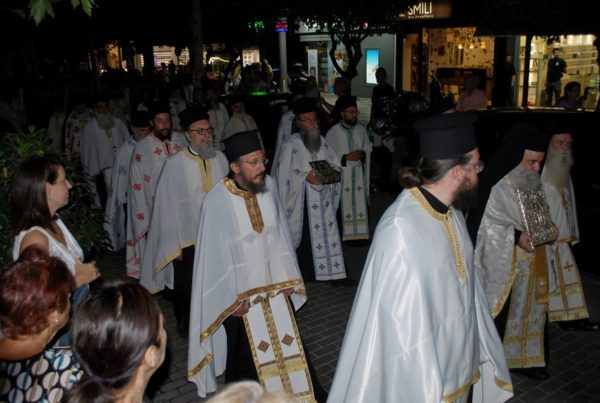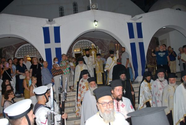 Στο τέλος ο Σεβασμιώτατος ευχαρίστησε τον πιστό λαό, το άγημα και την μπάντα του Πολεμικού Ναυτικού, τους ιερείς, συνεργάτες και εθελοντές του Ιερού Ναού για την άψογη προετοιμασία και επιτυχία της εφετινής Πανηγύρεως.