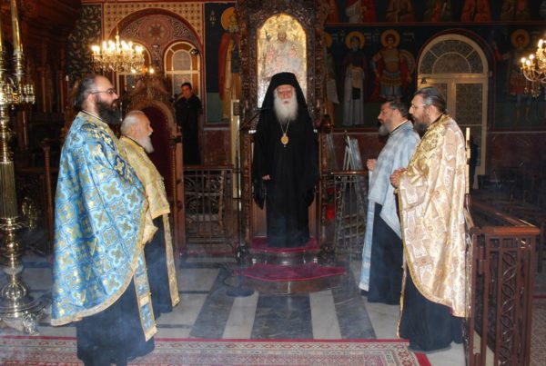 Προηγήθηκε στις 5 το απόγευμα ο Εσπερινός. Στην Ακολουθία χοροστάτησε ο Σεβασμιώτατος Μητροπολίτης Κυδωνιών κ. Αθηναγόρας.